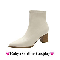 Giày Boot cao gót mũi nhọn đế vuông màu trắng kem hottrend ( Size 35 - 39 )