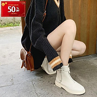 Boot Nữ Đế Bằng Cao 3cm Cổ Cao S131 Kem thời trang cá tính trẻ trung