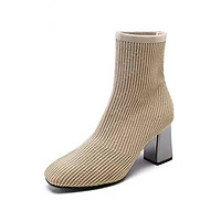 Giày Bốt Nữ, Bốt Nữ Cao Cổ Độn Đế Cao 5 Cm, Chất Len Mềm Và Cá Tính, Dáng Ôm, Thoải Mái, Thời Trang Hai Màu Đen
