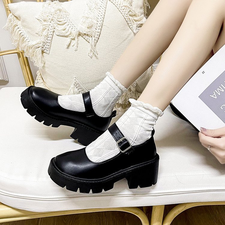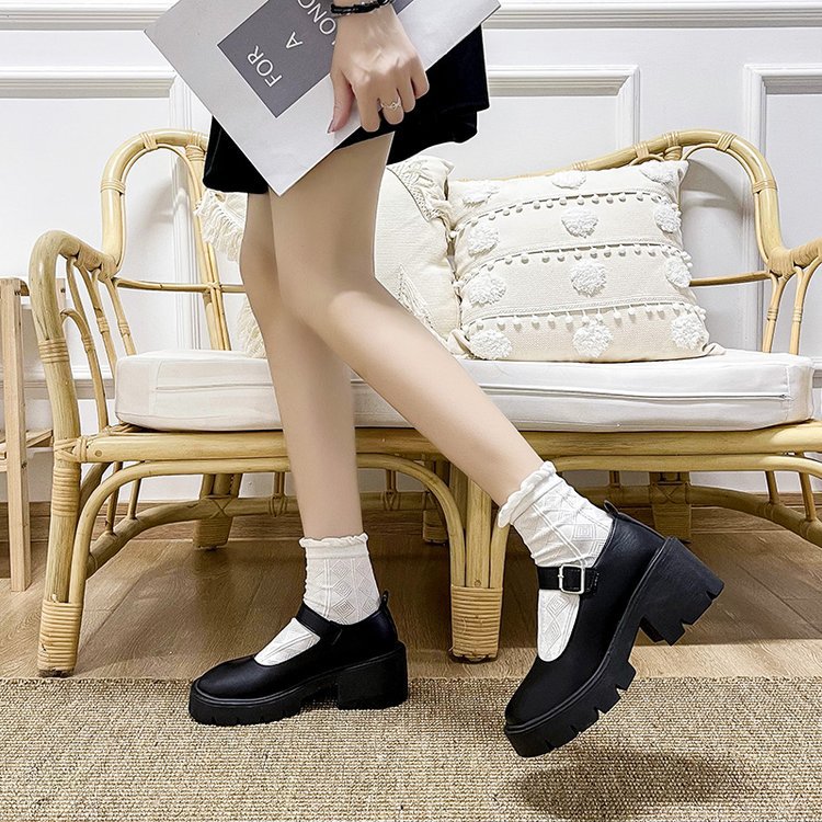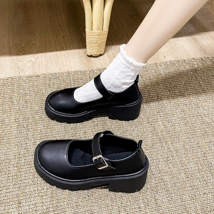 Giày bốt nữ da cổ thấp hotrend khuy cài boot quai ngang nữ gót vuông đế 5cm Jayshop V328