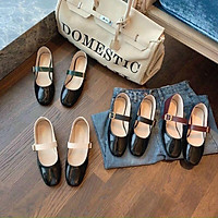 Giày mary jane bệt mũi tròn quai ngang da mềm đế bằng cao 2cm phong cách học sinh Nhật Bản