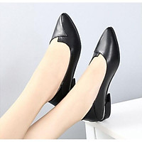 Giày bit mũi nữ da mềm đế cao 3cm đen rêu kem