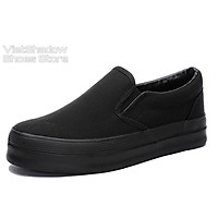 Slip on vải nữ - Giày lười vải nữ đế bánh mì - Vải thô màu trắng, đen đế trắng và đen full - Mã SP F362