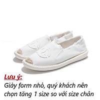 Slip on nữ - Giày lười vải nữ đế cói thêu họa tiết hoạt hình - Chất liệu đế gai bện, vải bố 2 màu đen và trắng - Mã A51