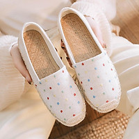 Slip on cói nữ - Giày lười vải thêu - Chất liệu vải bố sợi lanh 2 màu (be) và (xám) - Mã SP X-19