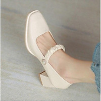 Sẵn Form to Giày Búp Bê Marry Jane Da Trơn Quai Ngang Nhún Đế Vuông 5Cm G136