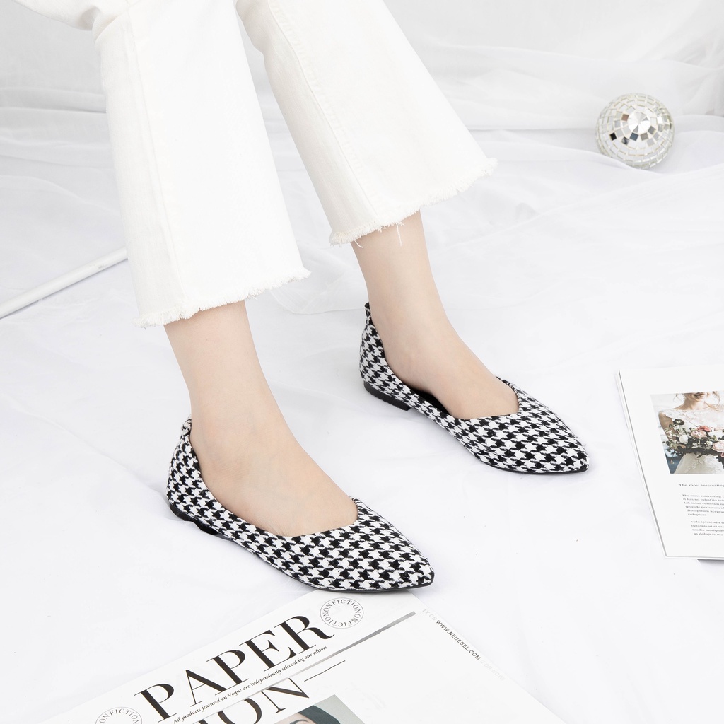 THÔNG TIN SẢN PHẨM - GIÀY BÚP BÊ MŨI NHỌN sở hữu thiết kế mũi nhọn tinh tế, kết hợp với chất liệu vải caro xinh xắn, mang đến hình ảnh dịu dàng nữ tính, nhưng không kém phần thanh lịch, thời trang. - GIÀY BÚP BÊ MŨI NHỌN MWC được thiết kế tỉ mĩ với form dáng chuẩn đối với người Việt, giúp bảo vệ nâng niu bàn bạn chân của bạn, đảm bảo dép mềm êm chân, giữ form tốt. - ĐẾ GIÀY được làm bằng chất liệu cao su êm ái mang lại sự thoải mái tối đa cho người dùng, mặt đế còn có độ bám tốt để bạn có thể sải bước thật vững vàng và tự tin. - Thương hiệu: MWC - Sản xuất: Việt Nam