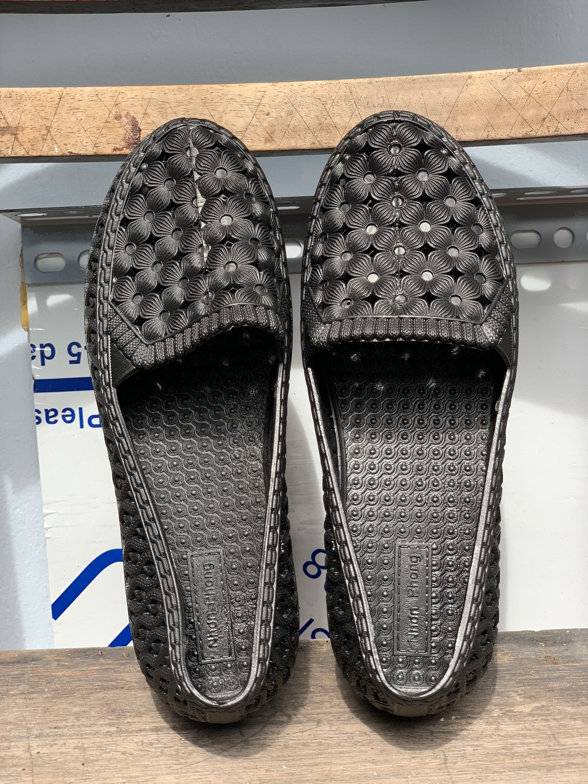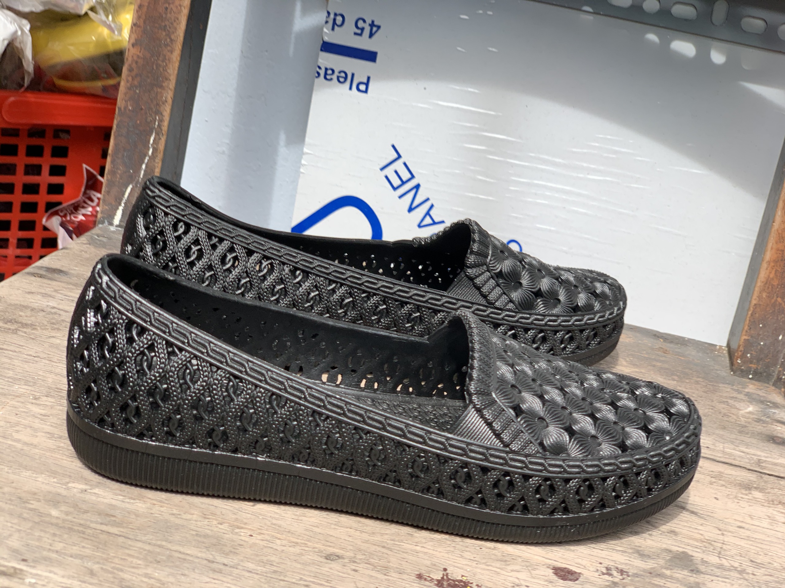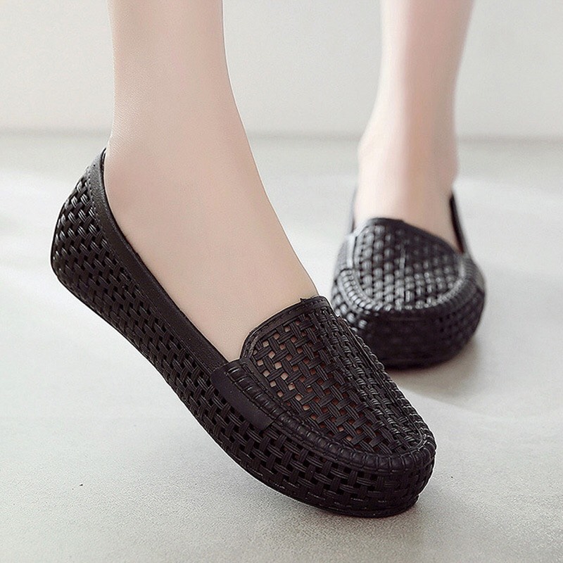 - Thiết kế dạng giày búp bê với luới đan thoát khí.