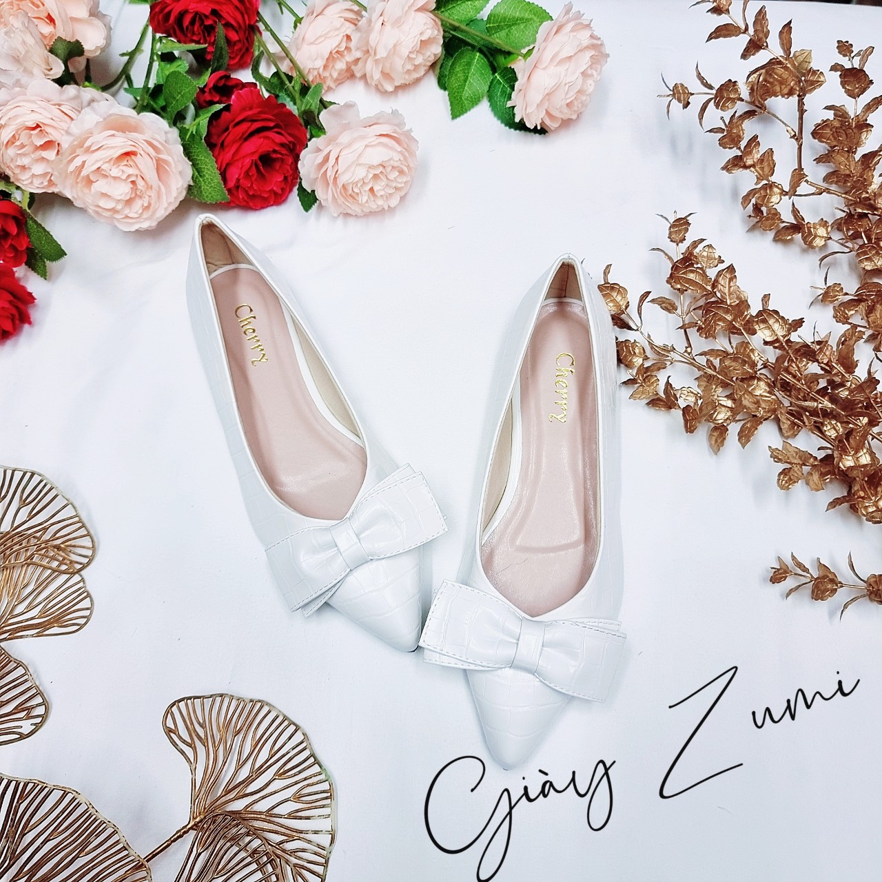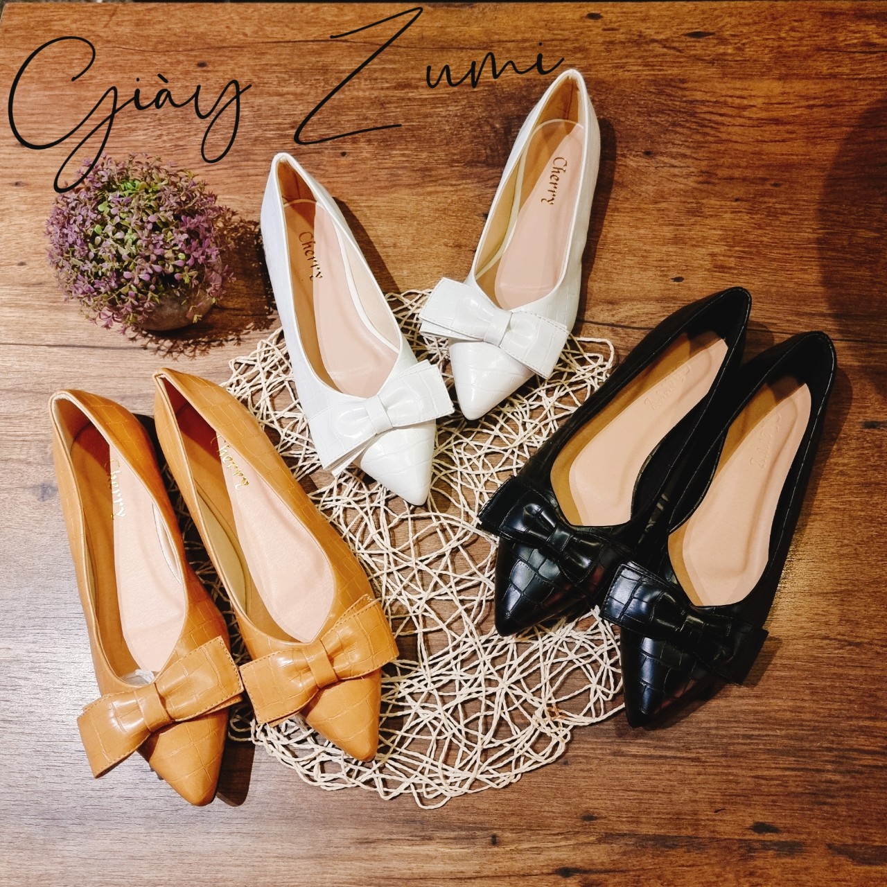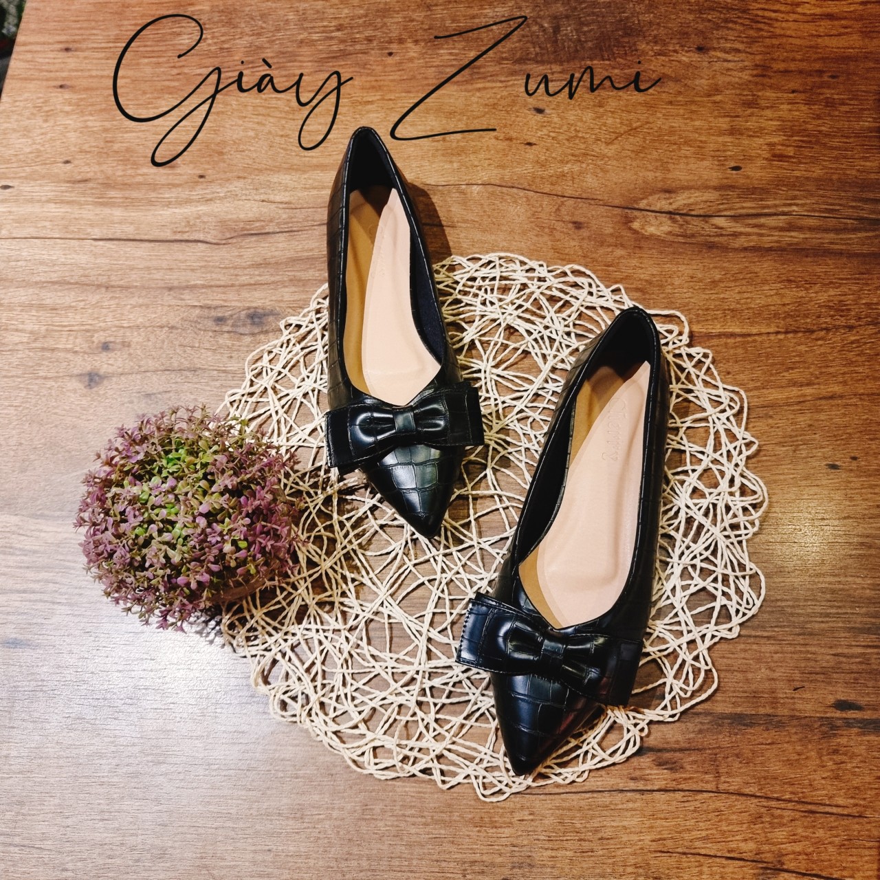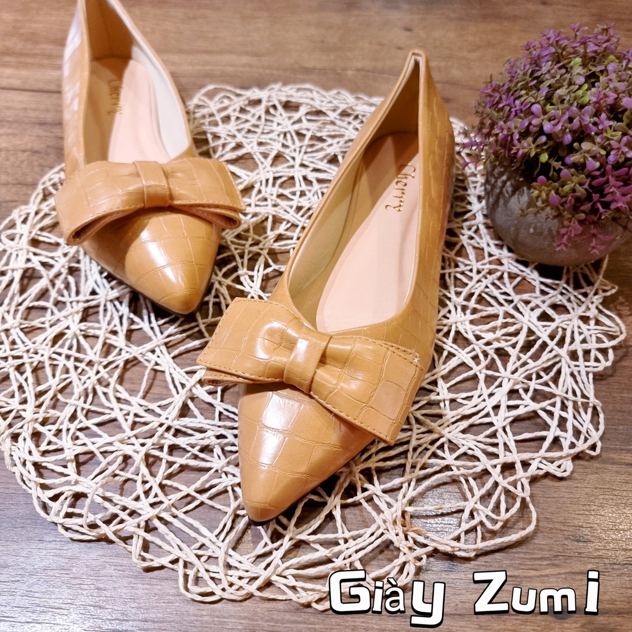 Giày Búp Bê Nữ Big Size Da Vân Cá Sấu Phối Nơ Thời Trang Cao Cấp Size 40 - 44 BB001