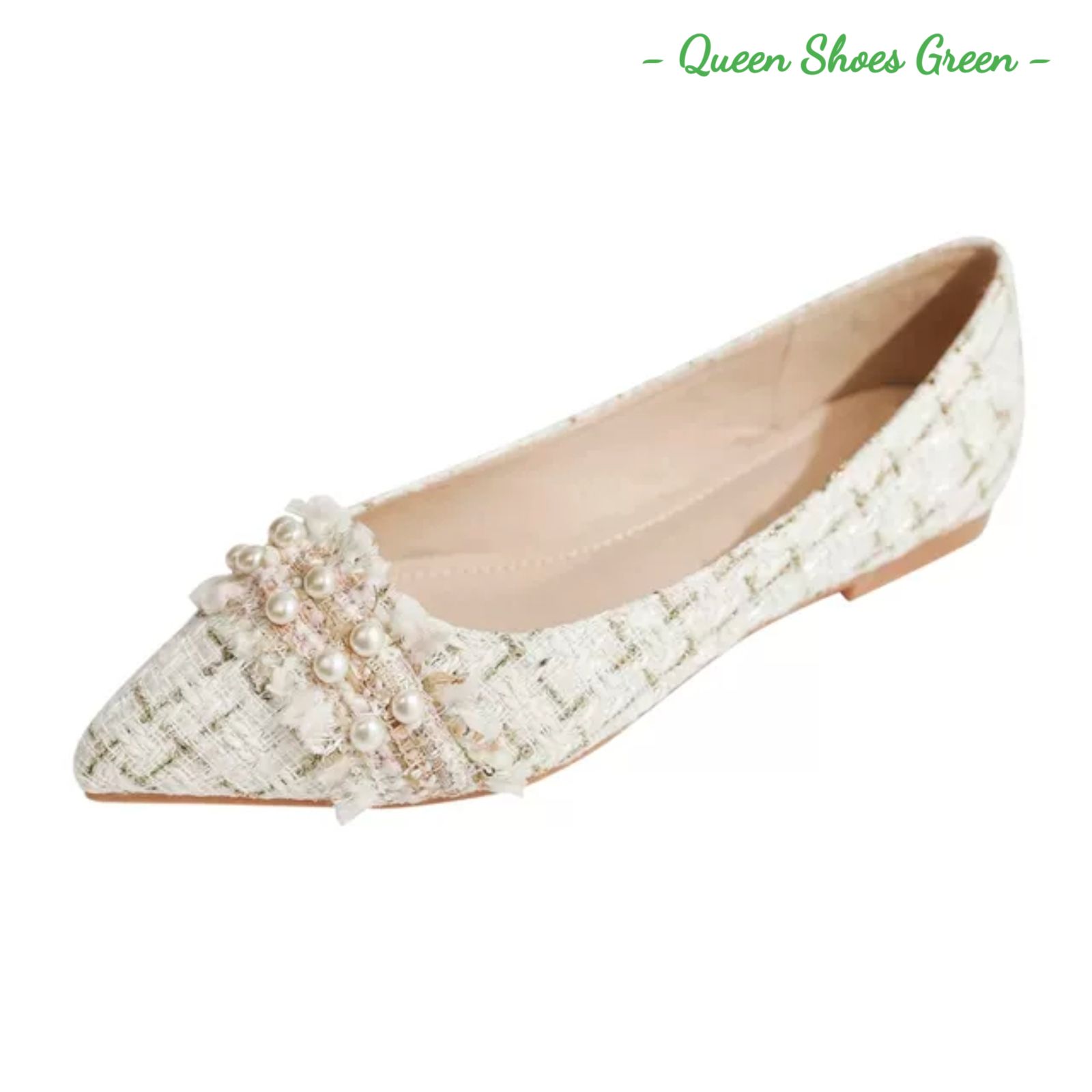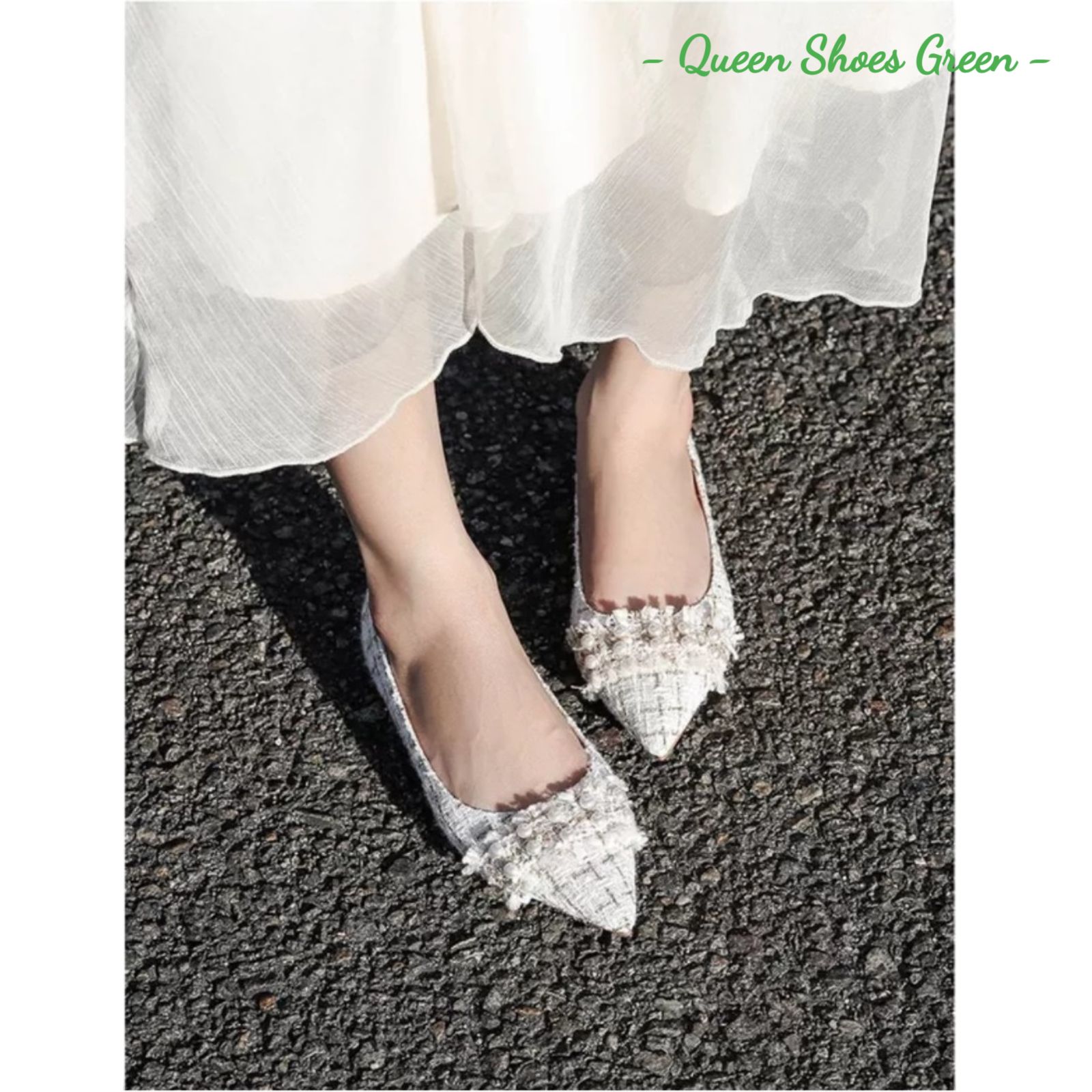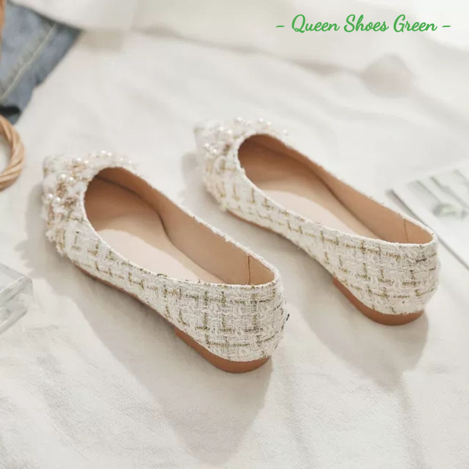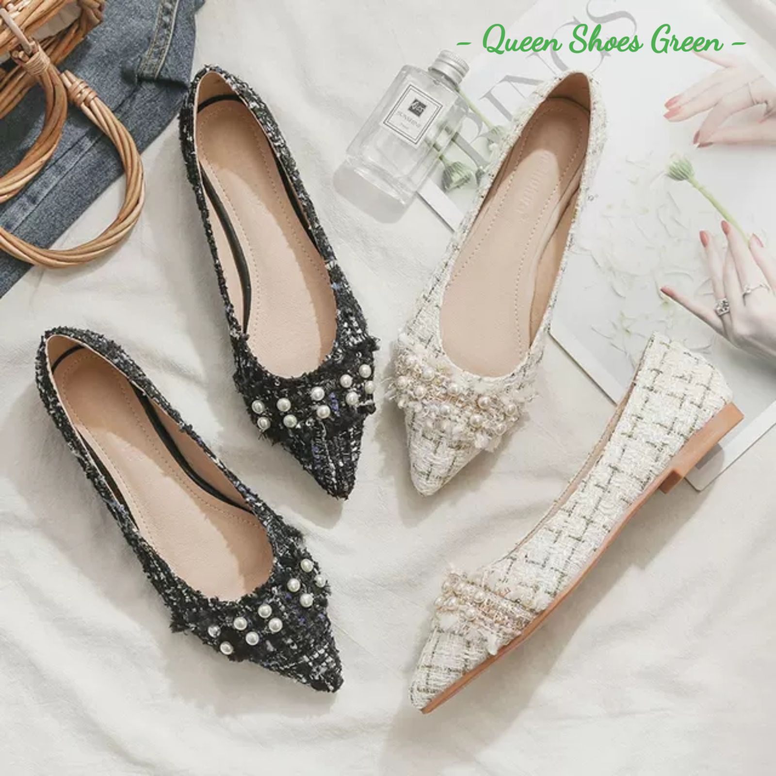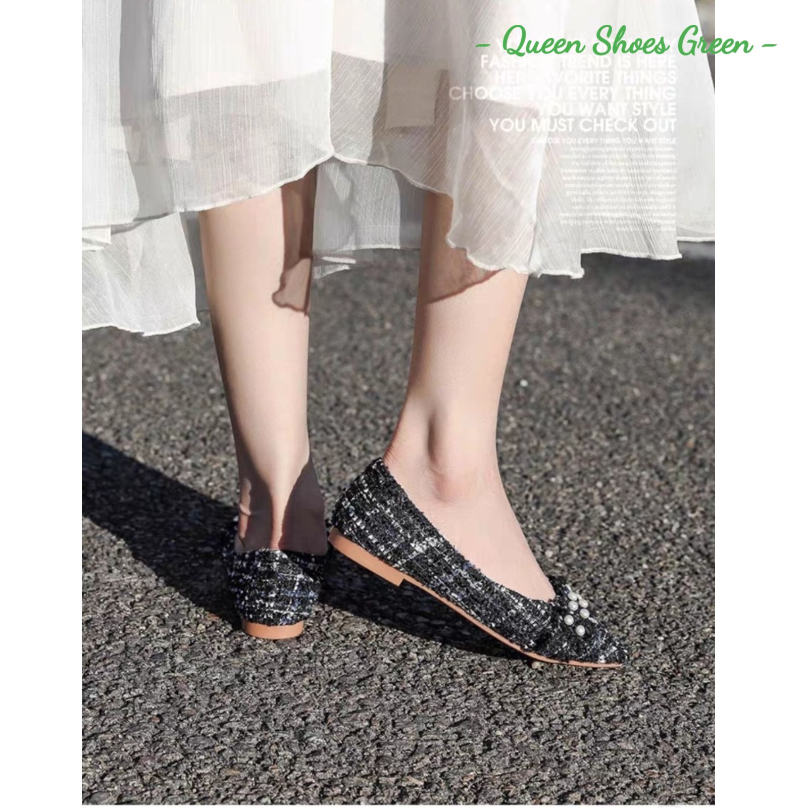 Giới thiệu Giày búp bê nữ đế bệt mũi nhọn đính kim sa kẻ caro phối nơ ngọc - Hàng Quảng Châu cao cấp đế cao su đúc siêu mềm tôn dáng lót êm ái size 35 đến 39 - Cam kết hàng chất lượng - Caro nơ ngọc