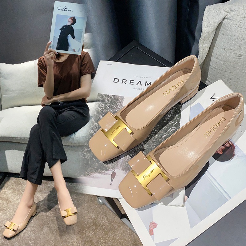 Giới thiệu Giày búp bê nữ giày bệt da mềm thoải mái êm chân thời trang thanh lịch mũi vuông kèm nơ xinh xắn kèm quà MSP: 199-5