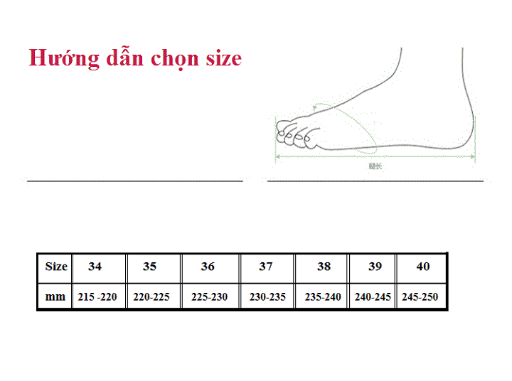 Giày Mọi NữThích hợp đi chơi, dự tiệc. Màu sắc sang trọng, tao nhã, dễ dàng phối với các trang phục khác nhau như: Quần short, jean, váy, đầm dạo phố, jump. Nổi bật và tôn lên nét quyến rũ của các bạn gái. Thân giày mềm mại, ôm chân mà không làm đau chân, giúp các bạn vững vàng, tự tin sải bước. Một đôi giày có thể mang cùng với nhiều loại trang phục thì quả là vừa thời trang, vừa ưu việt quá phải không nào?- Kiểu dáng nữ tính gọn nhẹ: Thích hợp với các bạn trẻ dễ phối đồ , cá tính, phù hợp với mọi lúc mọi nơi , đi chơi đi làm việc , - Chất liệu : da , đế mềm, có thể uốn cong mà không bị gãy mép.- Giày Nữ size từ: 34 đến 40 với 2 màu khác nhau- Đế giày với các lớp cao su có độ đàn hồi cao, các đường rãnh ma sát được xẻ và bố trí dưới mặt đế một cách khoa học, giúp giày luôn êm ái khi sử dụng và không bị vướng, mắc các loại rác, sỏi, đá khi sử dụng.- Giày có khả năng chống trơn, chịu mài mòn tốt, thoáng khí, nhanh khô - Tăng thêm chiều cao 2cm Thông tin sản phẩm: Giày Mọi Nữ- Giới tính: Nữ- Tên sản phẩm: Giày búp bê , Giày lười nữ - Không gây mùi, không đau chân dù bạn đi 24/24- Chiều cao tăng thêm: 2cm- Chất liệu: cói thoáng mát , êm chân , thoải mái- Lớp lót trong: Thoáng khí- Đế lót: Vải mịn- Chất liệu đế: Cao su- Kiểu dáng: giày bệt nữNgày nay, mua online trở thành một làn sóng vô cùng mạnh mẽ, nhưng cũng khó nếu bạn không biết chọn cho mình size nào đúng không? vì đâu biết mình mang size nào. Hôm nay Yến Yến Fashion sẽ hướng dẫn các bạn đo size giày chân mà không phải lo ngại khi mua giày online nữa nhé. Cách đo cỡ chân và xác định size giày: Các bạn giúp shop tìm 1 tờ giấy nào đó có thể đặt vừa đôi bàn chân xinh xắn lên nhé. Sau đó đặt bàn chân lên, Lấy viết (Hoặc bất kì thứ gì có thể làm dấu được. gạch từ ngón chân dài nhất tới gót chân. Hãy nhớ đo chuẩn và không gạch sai nhé, vì 0.5cm cũng có thể làm chân bạn mang rộng đó, sau đó đối chiếu với bảng size để có thể mua giày online mà không cần phải thử nhé.Cùng tham khảo một số ảnh chi tiết về sản phẩm bên shop nhé