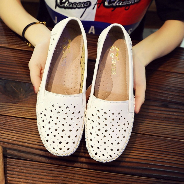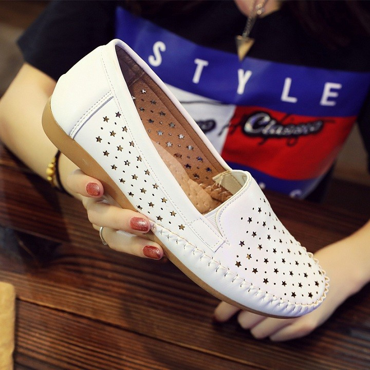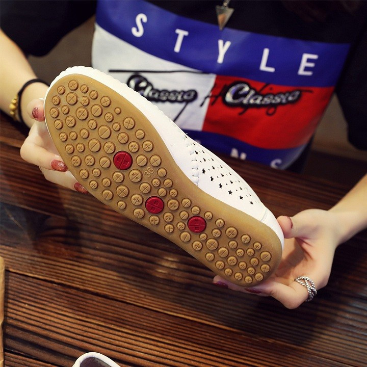 Giày Mọi NữThích hợp đi chơi, dự tiệc. Màu sắc sang trọng, tao nhã, dễ dàng phối với các trang phục khác nhau như: Quần short, jean, váy, đầm dạo phố, jump. Nổi bật và tôn lên nét quyến rũ của các bạn gái. Thân giày mềm mại, ôm chân mà không làm đau chân, giúp các bạn vững vàng, tự tin sải bước. Một đôi giày có thể mang cùng với nhiều loại trang phục thì quả là vừa thời trang, vừa ưu việt quá phải không nào?- Kiểu dáng nữ tính gọn nhẹ: Thích hợp với các bạn trẻ dễ phối đồ , cá tính, phù hợp với mọi lúc mọi nơi , đi chơi đi làm việc , - Chất liệu : da , đế mềm, có thể uốn cong mà không bị gãy mép.- Giày Nữ size từ: 34 đến 40 với 2 màu khác nhau- Đế giày với các lớp cao su có độ đàn hồi cao, các đường rãnh ma sát được xẻ và bố trí dưới mặt đế một cách khoa học, giúp giày luôn êm ái khi sử dụng và không bị vướng, mắc các loại rác, sỏi, đá khi sử dụng.- Giày có khả năng chống trơn, chịu mài mòn tốt, thoáng khí, nhanh khô - Tăng thêm chiều cao 2cm Thông tin sản phẩm: Giày Mọi Nữ- Giới tính: Nữ- Tên sản phẩm: Giày búp bê , Giày lười nữ - Không gây mùi, không đau chân dù bạn đi 24/24- Chiều cao tăng thêm: 2cm- Chất liệu: cói thoáng mát , êm chân , thoải mái- Lớp lót trong: Thoáng khí- Đế lót: Vải mịn- Chất liệu đế: Cao su- Kiểu dáng: giày bệt nữCùng tham khảo một số ảnh chi tiết về sản phẩm bên shop nhé