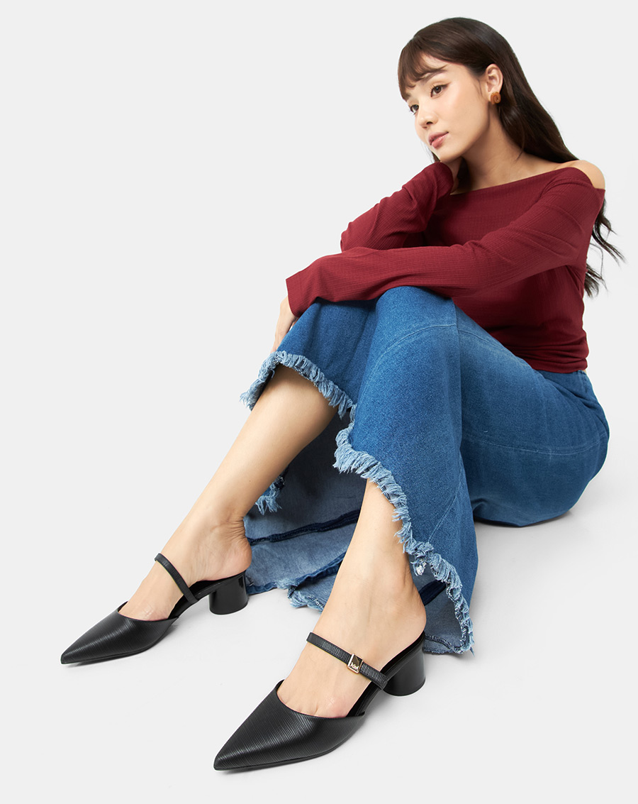 Giày mules phối khoá logo cách điệu kiểu dáng thanh lịch, tối giản.
