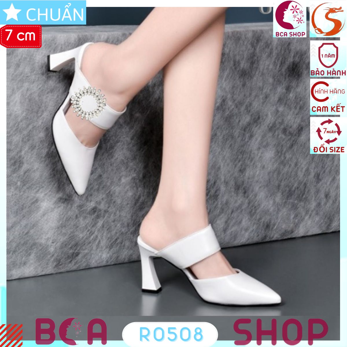 Giày cao gót nữ 7p RO508 ROSATA tại BCASHOP kiểu dép sục nữ màu trắng, quai ngang có đính hoa kim cương lấp lánh