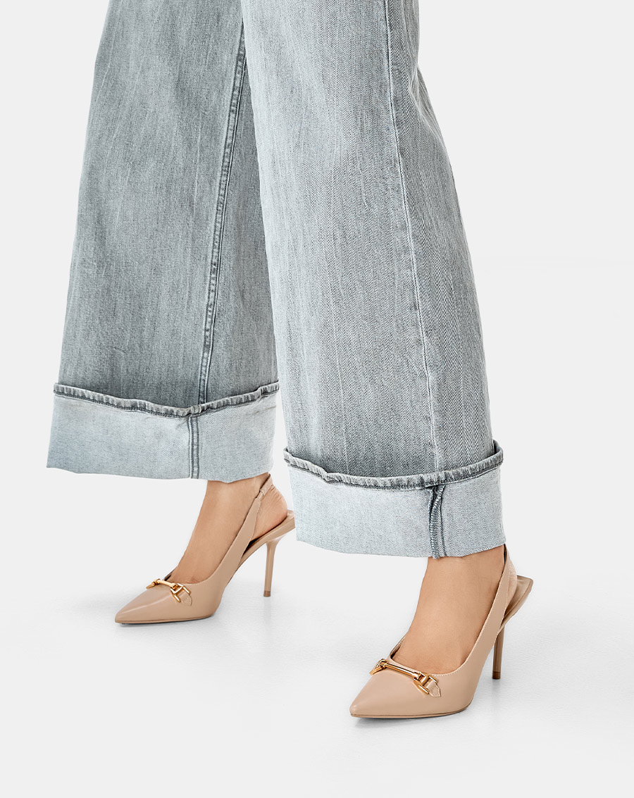 Giày cao gót Slingback trang trí khóa thanh lịch, điểm nhấn khoá trang trọng