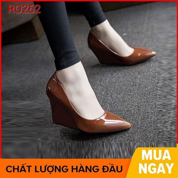 - Tên sản phẩm: Giày cao gót nữ đẹp đế vuông 7 phân màu đen nâu hàng hiệu rosata ro262