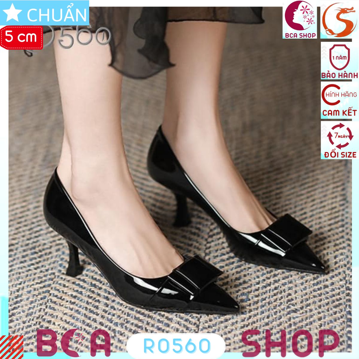Giày cao gót nữ màu đen 5p RO560 ROSATA tại BCASHOP gót nhọn, mũi nhọn có nhấn nơ vuông thời thượng, sang trọng