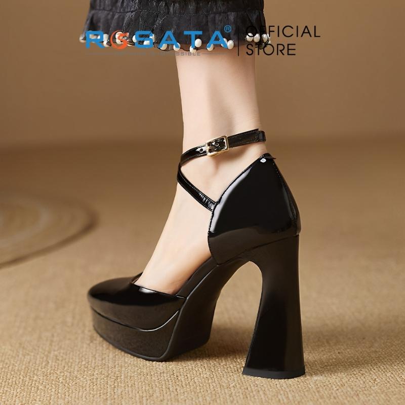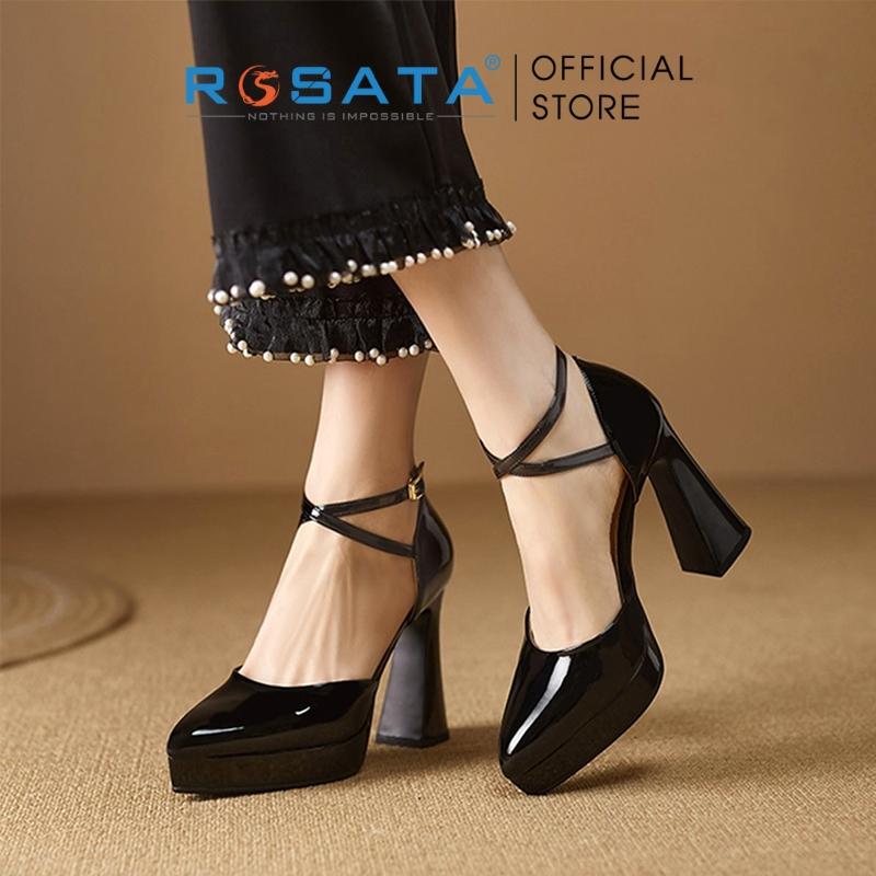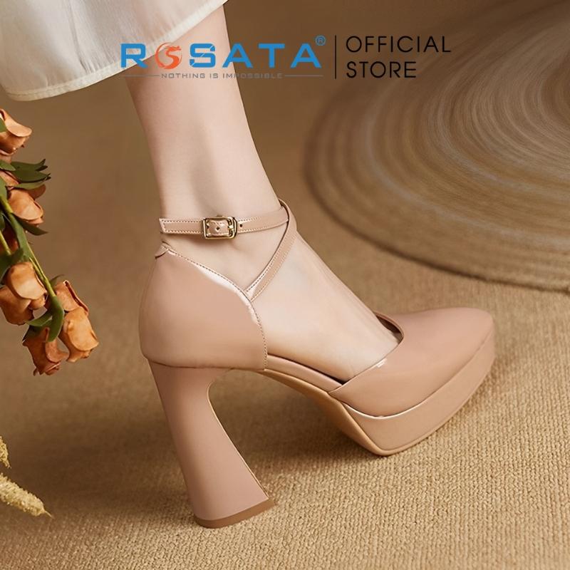 Tên sản phẩm: Giày cao gót nữ ROSATA RO493 da trơn mũi nhọn quai hậu khóa cài dây mảnh gót cao 8cm xuất xứ Việt Nam