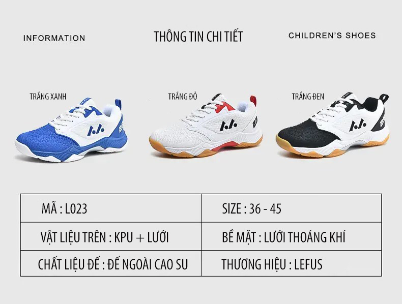 • Giày cầu lông bóng chuyền Lefus L023 được làm từ da PU bền, tạo độ chắc chắn cho giày và giúp ôm chân hơn.