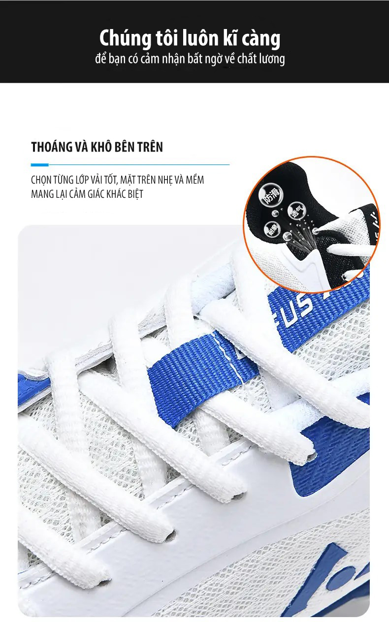 • Mũi giày được thiết kế cân dối, độ vừa vặn tốt, lớp nhựa KPU bảo vệ chống mòn, lô xỏ dây chắc chắn giúp giày ôm chân hơn, đem đến cho bạn những bước di chuyển tự tin.