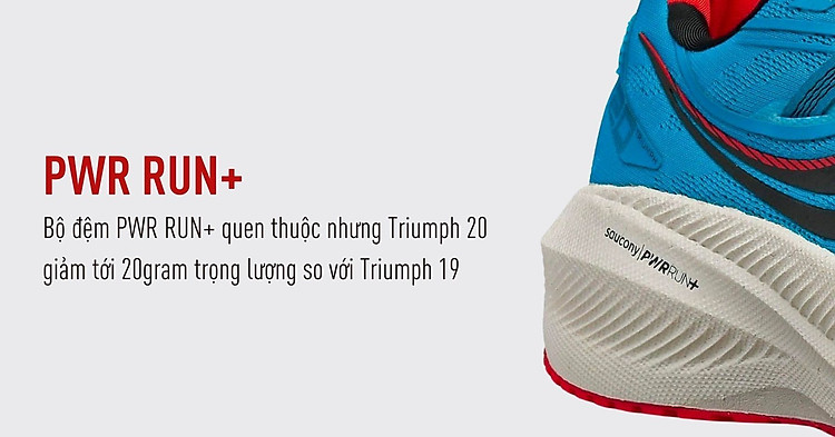 Vẫn là bộ đệm PWR RUN+ dày dặn, cực kì êm ái. Triumph vẫn luôn là người bạn đồng hành tuyệt vời cho các buổi chạy easy, long run hoặc recovery. Đặc biệt dù nhiều đệm hơn Triumph 19 nhưng trọng lượng của Triumph 20 lại nhẹ hơn tới 20g (ở size 9US).