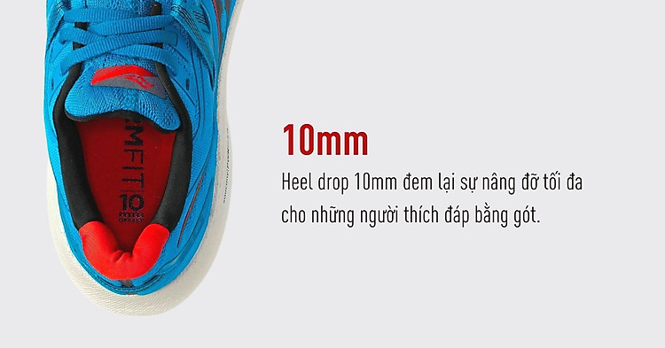Khác với những dòng giày như Kinvara, Ride hay Endorphin. Độ chênh gót của Triumph 20 lên tới 10mm, điều mà Saucony hướng tới cho Triumph 20 là những buổi chạy nhẹ nhàng, chạy phục hồi, không tạo quá nhiều áp lực lên bàn chân. Không phải tốc độ, độ bền và sự êm ái là những gì Triumph 20 dành cho bạn.