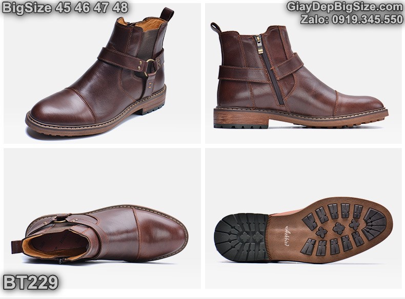 Giày chelsea cổ cao da thật big size cỡ lớn 45 46 47 48 cho nam cao to chân ú bè