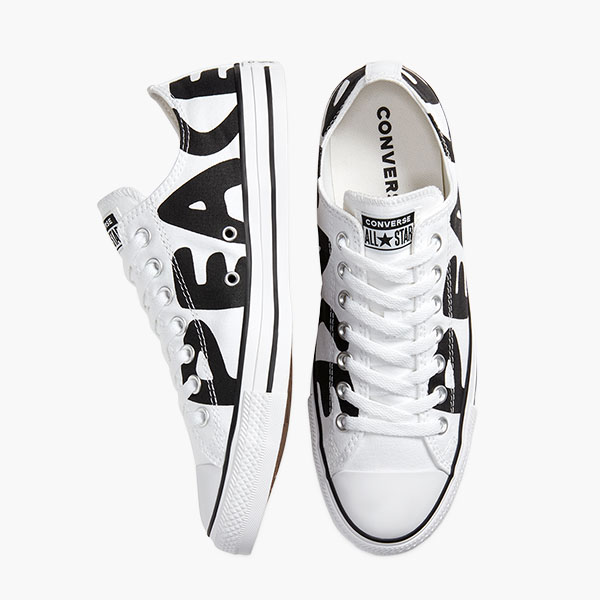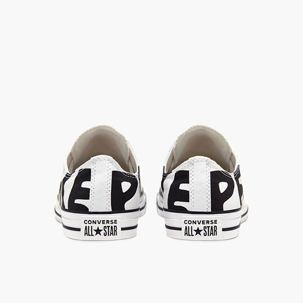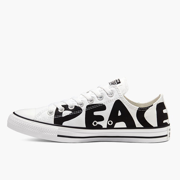 Trở lại với sản phẩm giày Converse Chuck Taylor All Star Empowered Peace dòng chữ Peace xuất hiện dọc theo thân giày, nổi bật trên nền vải Cavas trắng. Phần logo gót giày màu đen tăng tính tương phản & giúp tăng tính nổi bật kết hợp đế OrthoLite tạo cảm giác thoải mái khi vận động