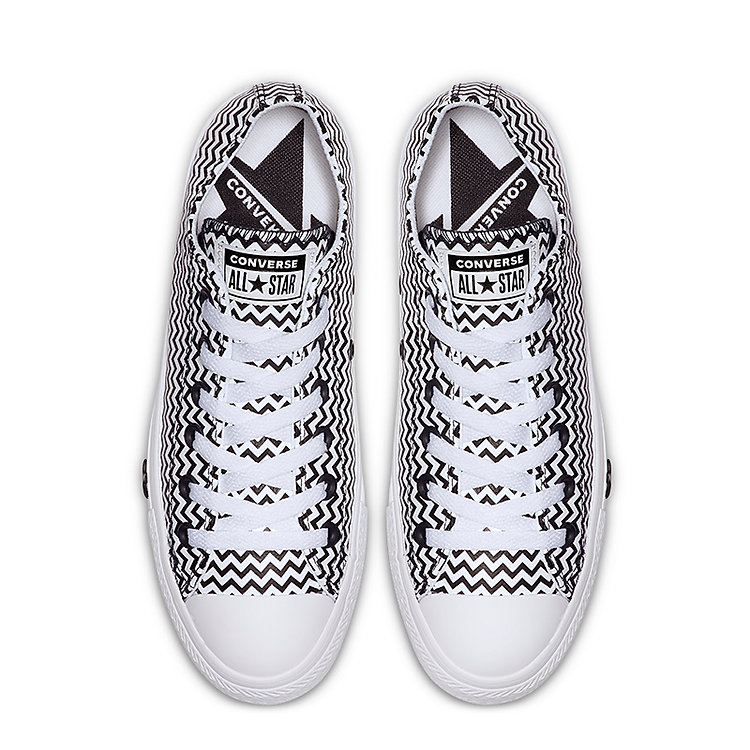 Chuck Taylor All Star VLTG thiết kế cổ thấp với full phần upper là họa tiết Chevron và icon ngôi sao được cách điệu ở foxing tạo điểm nhấn
