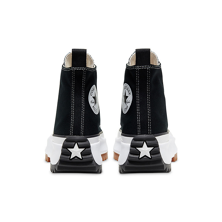 Gót giày thay vì có logo Converse quen thuộc thì với đôi Run Star Hike thay bằng ngôi sao màu đen ở chính giữa. Đế giày dày tới 6cm, và là một trong những đôi sneakers có phần đế dày nhất tính đến hiện tại.