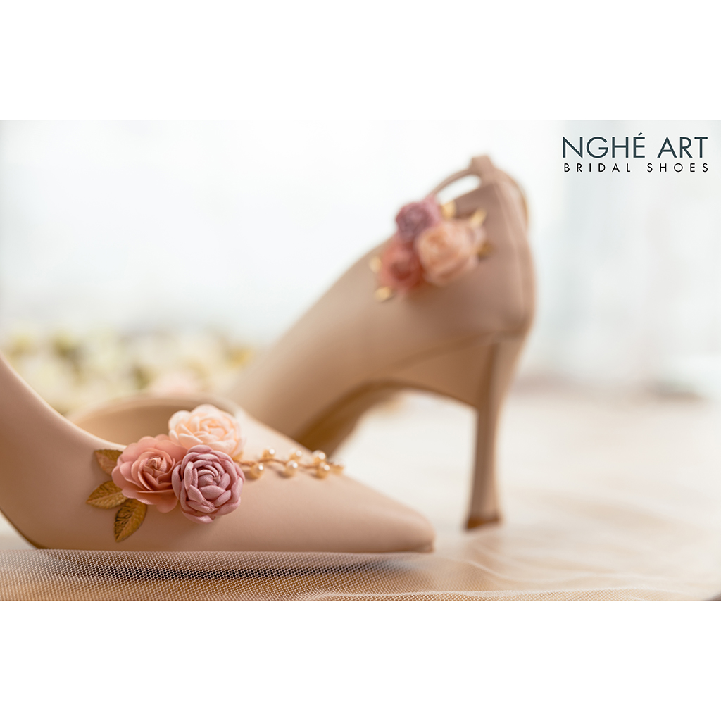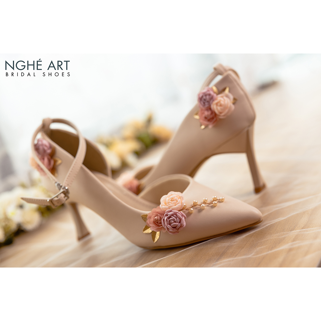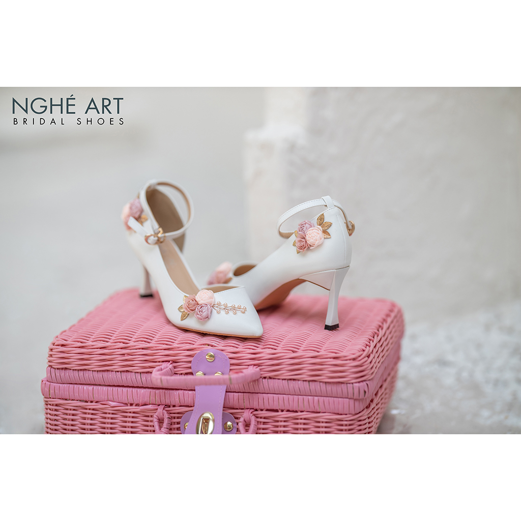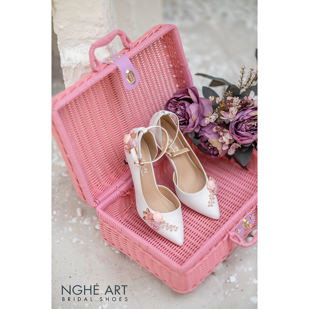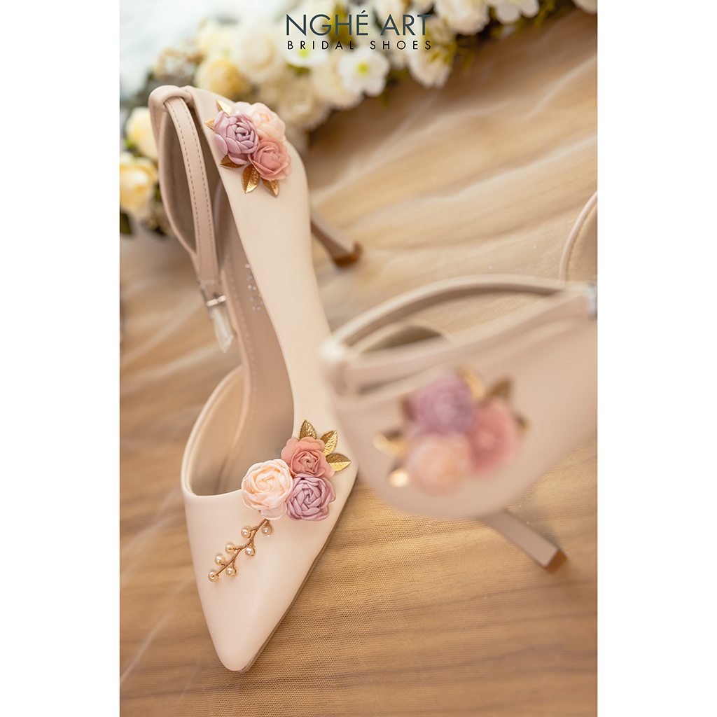 Sản phẩm giày khoét hở eo, phối giữa 3 màu hoa hồng lụa