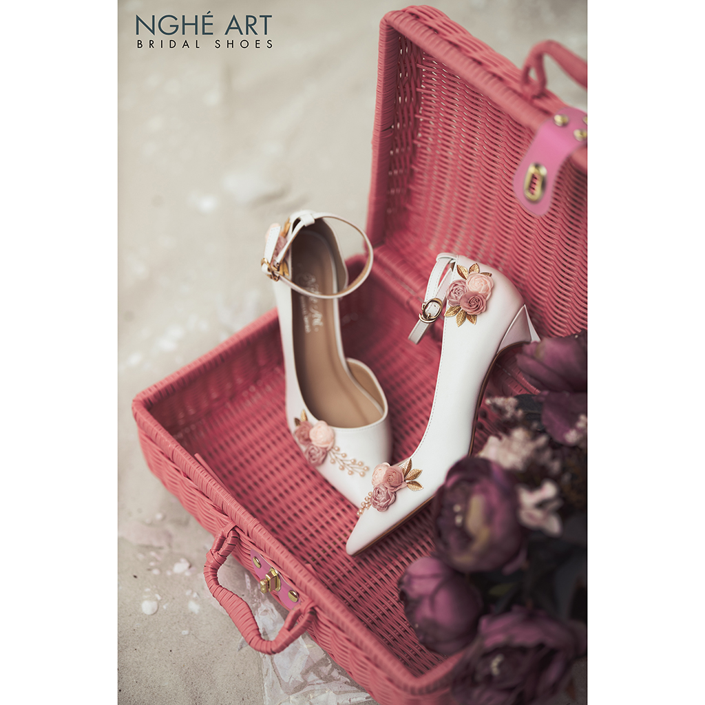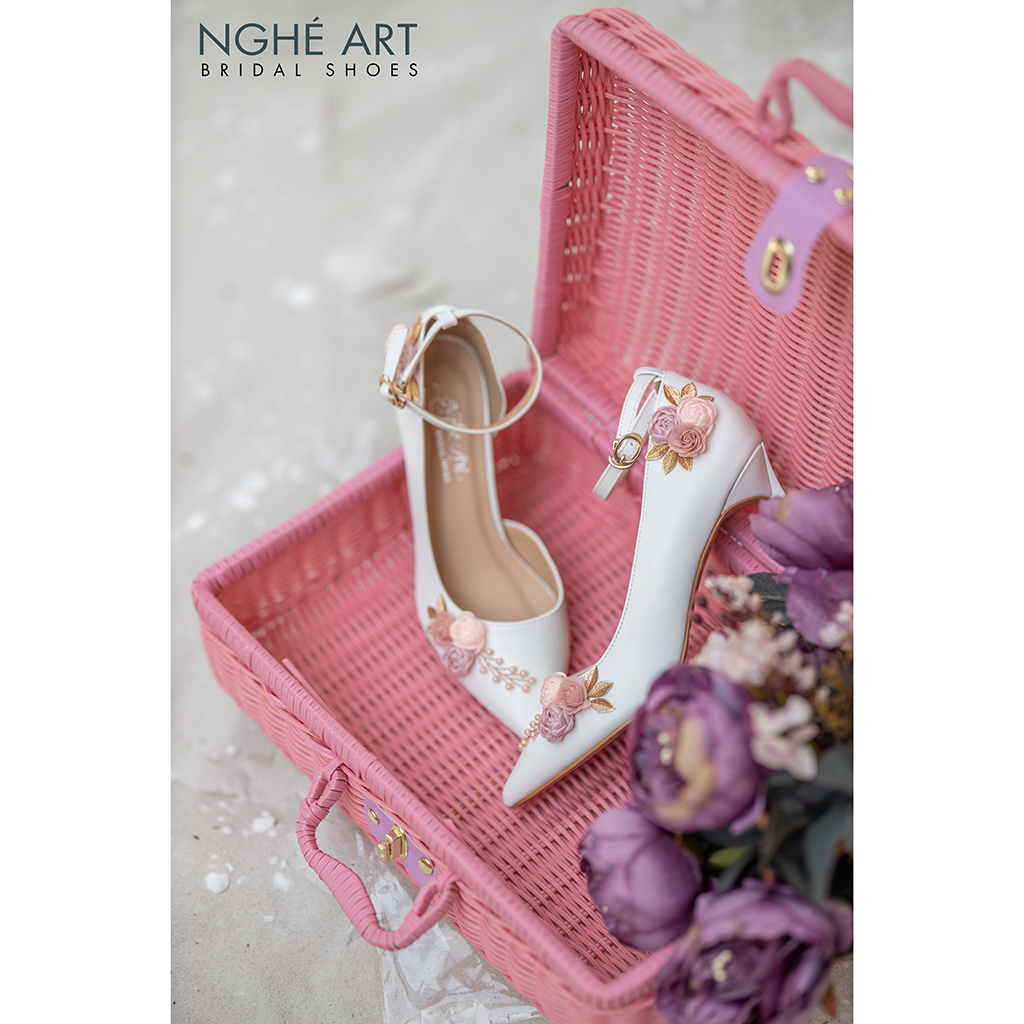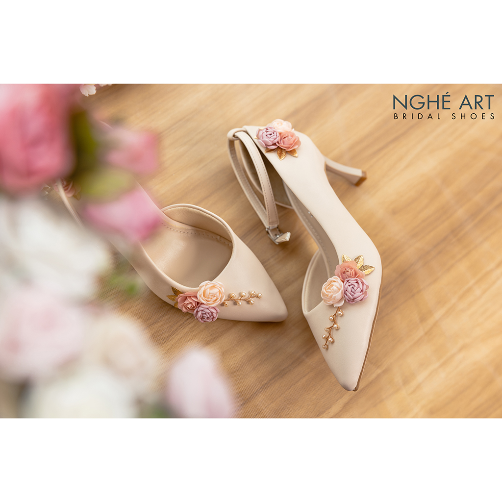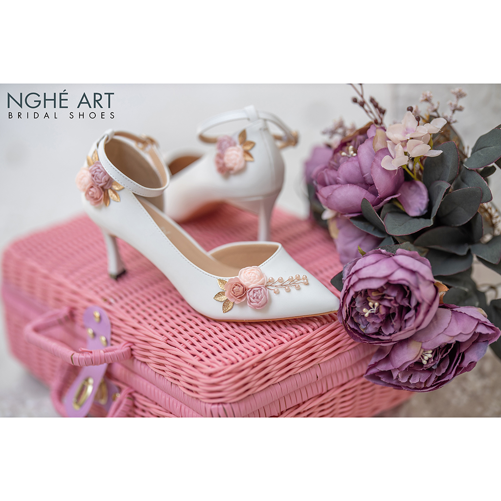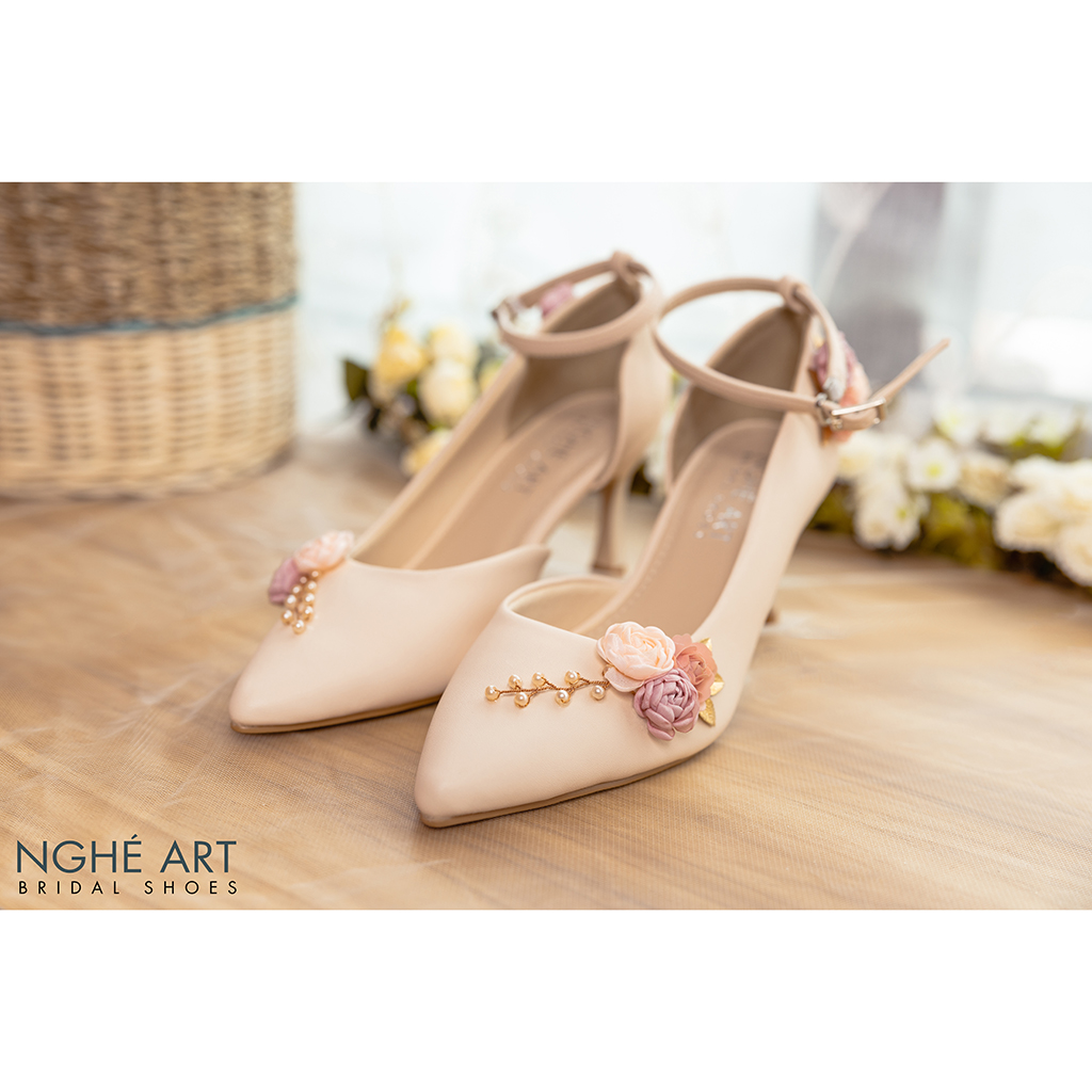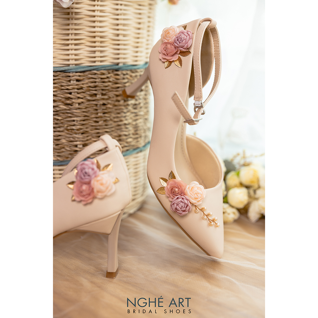 Sản phẩm giày khoét hở eo, phối giữa 3 màu hoa hồng lụa