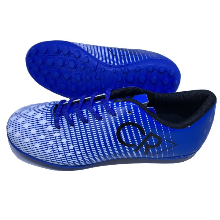 Giày đá banh sân cỏ nhân tạo CR7VM cho độ bám sàn tốt cũng như có độ bền cùng độ dẻo dai cao, là chọn lựa lý tưởng của những bạn nam yêu thích thể thao. Đặc biệt, thiết kế chủ đạo màu đen chuối nỏi bật, bắt mắt cùng logo ấn tượng, làm toát lên phong cách mạnh mẽ của cầu thủ sân cỏ.