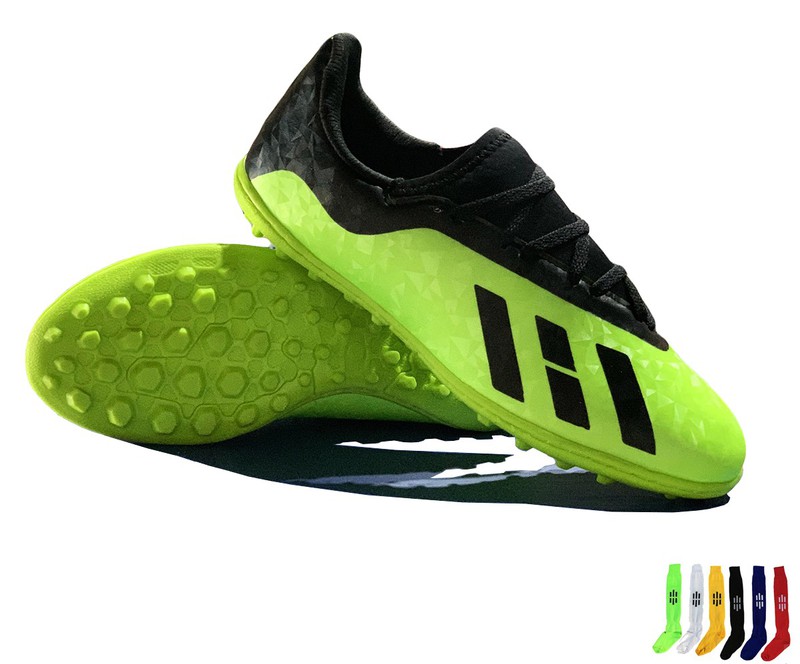 Đế giày được cao được làm từ cao su nên rất êm chân đặc biệt sản phẩm đã được may toàn bộ cho nên rất chắc chắn, thích ứng với sân cỏ nhân tạo và sân gạch và sân đất. Giày thiết kế dành riêng cho bề mặt sân cỏ nhân tạo với các khối đinh vừa hình tam giác có độ cao vừa phải, tránh trơn trượt ngay cả khi bạn chạy trên sân đồng thời hỗ trợ tuyệt vời cho những pha xử lý bóng bằng gầm giày, những cú ngoặt bóng siêu nhanh
