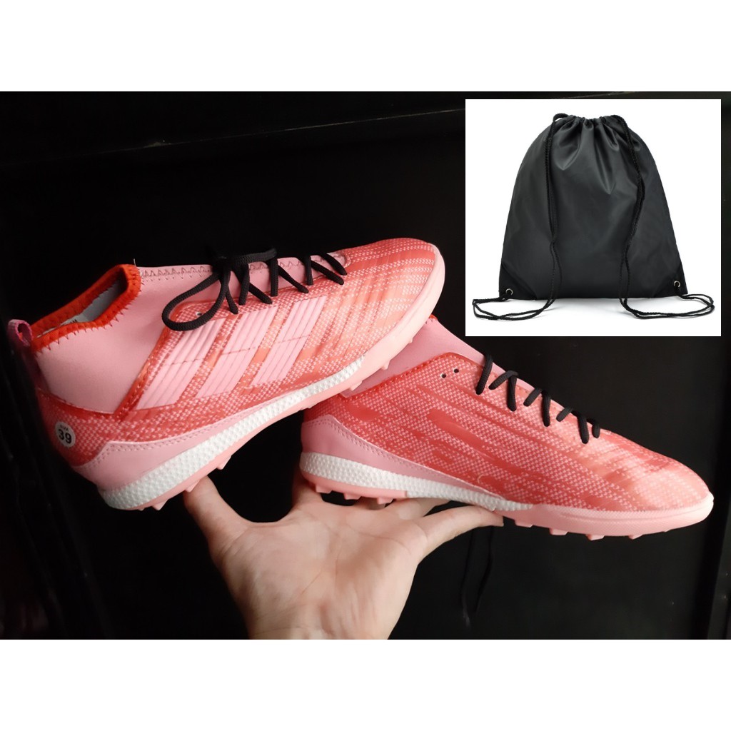 GIÀY ĐÁ BÓNG CỔ CAO HỒNG 3 SỌC KÈM TÚI RÚT ĐA NĂNG