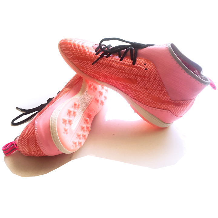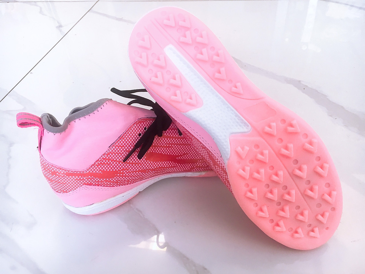 Màu hồng chủ đạo điểm xuyết là đuôi cam đế cam cho sự kết hợp hài hòa và tinh tế cho đôi giày đá bóng cổ cao