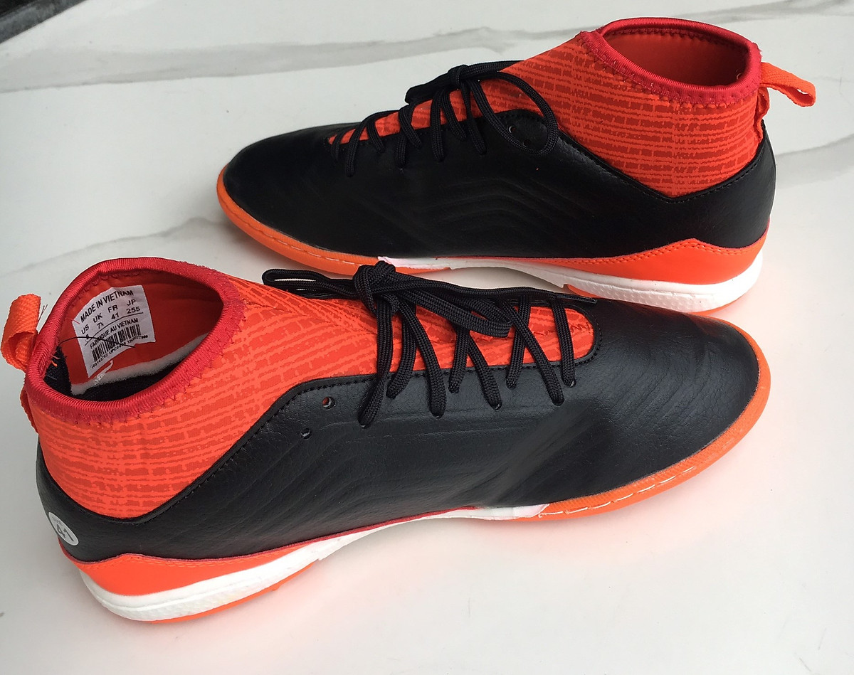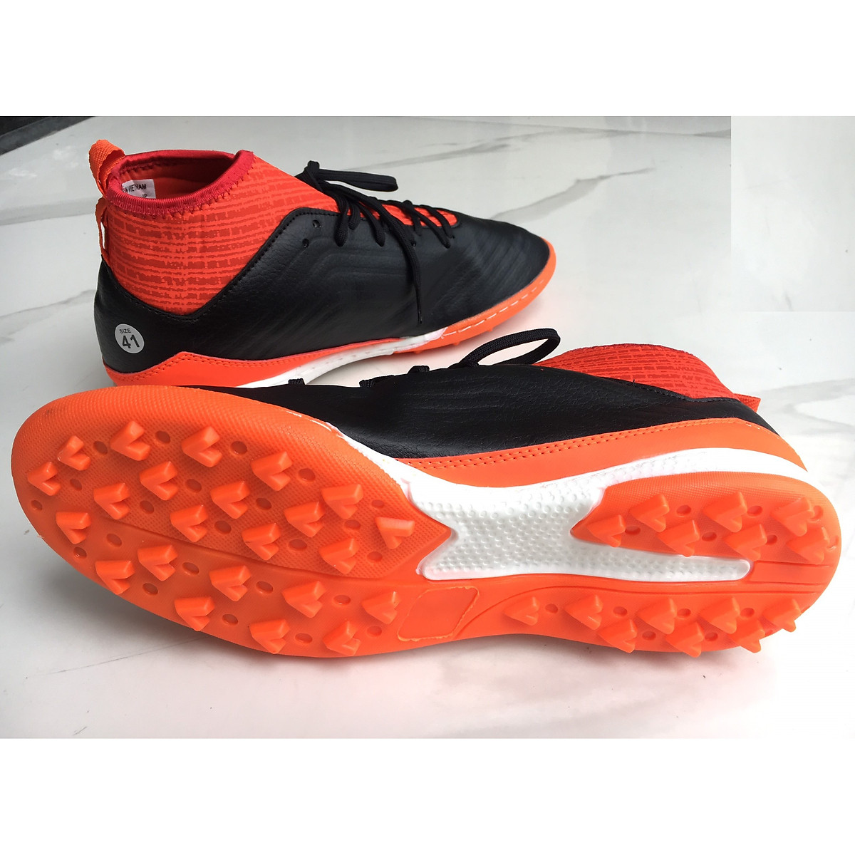 Đế giày được thiết kế nhựa dẻo mềm được và rất chắc chắn, thích ứng với sân cỏ nhân tạo.Phần lõi trong đôi giày đá banh sân 5 người là lớp vải mềm giúp thấm hút mồ hôi và tạo sự thông thoáng cho đôi chân, không gây mùi khó chịu