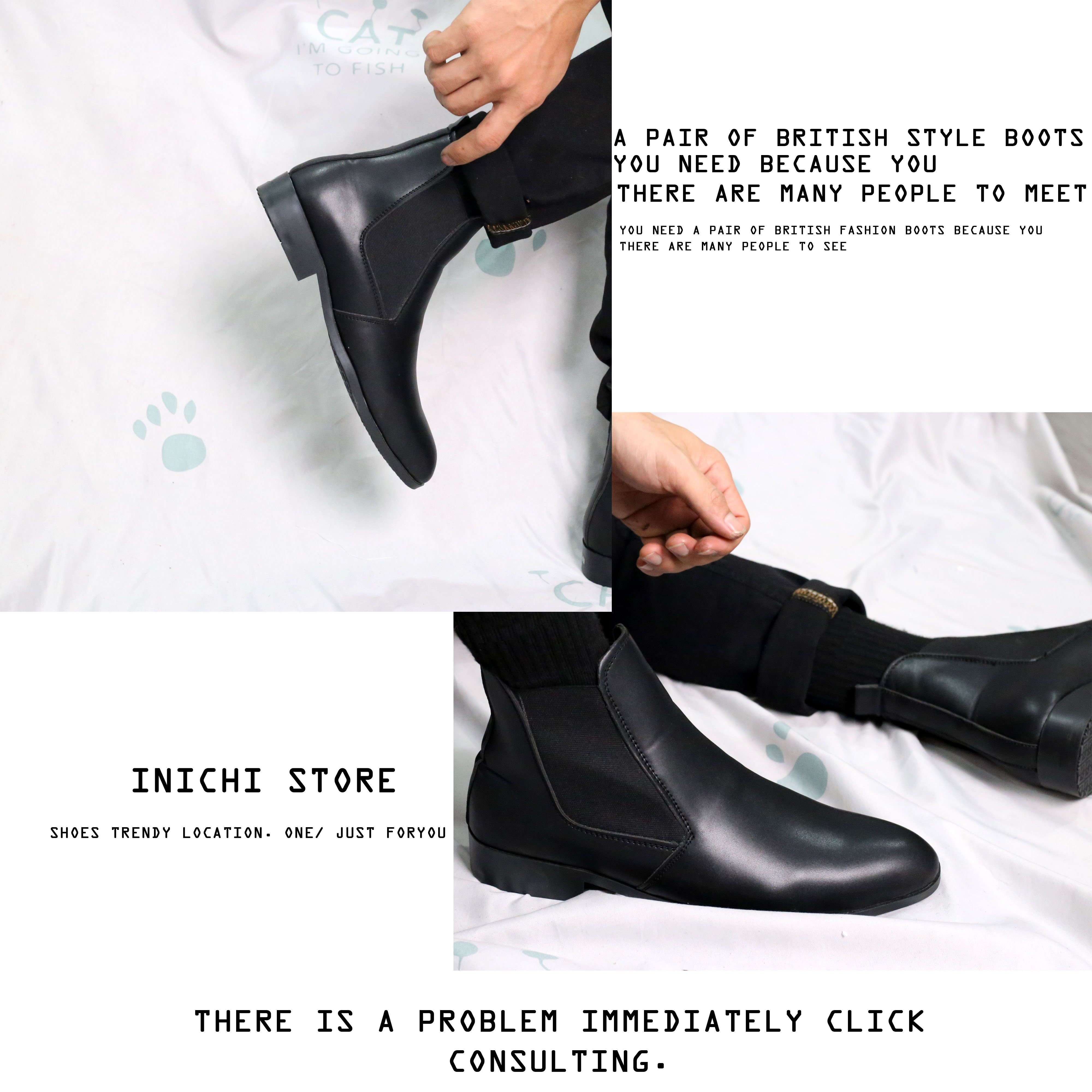 Giày da chelsea boost Inichi G1071 da loại tốt, có may đế