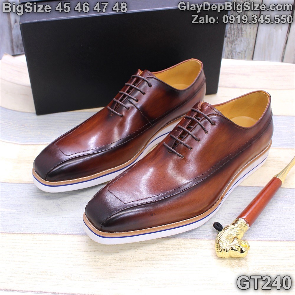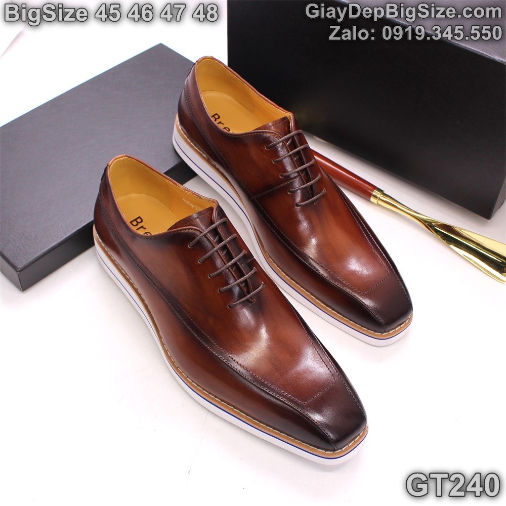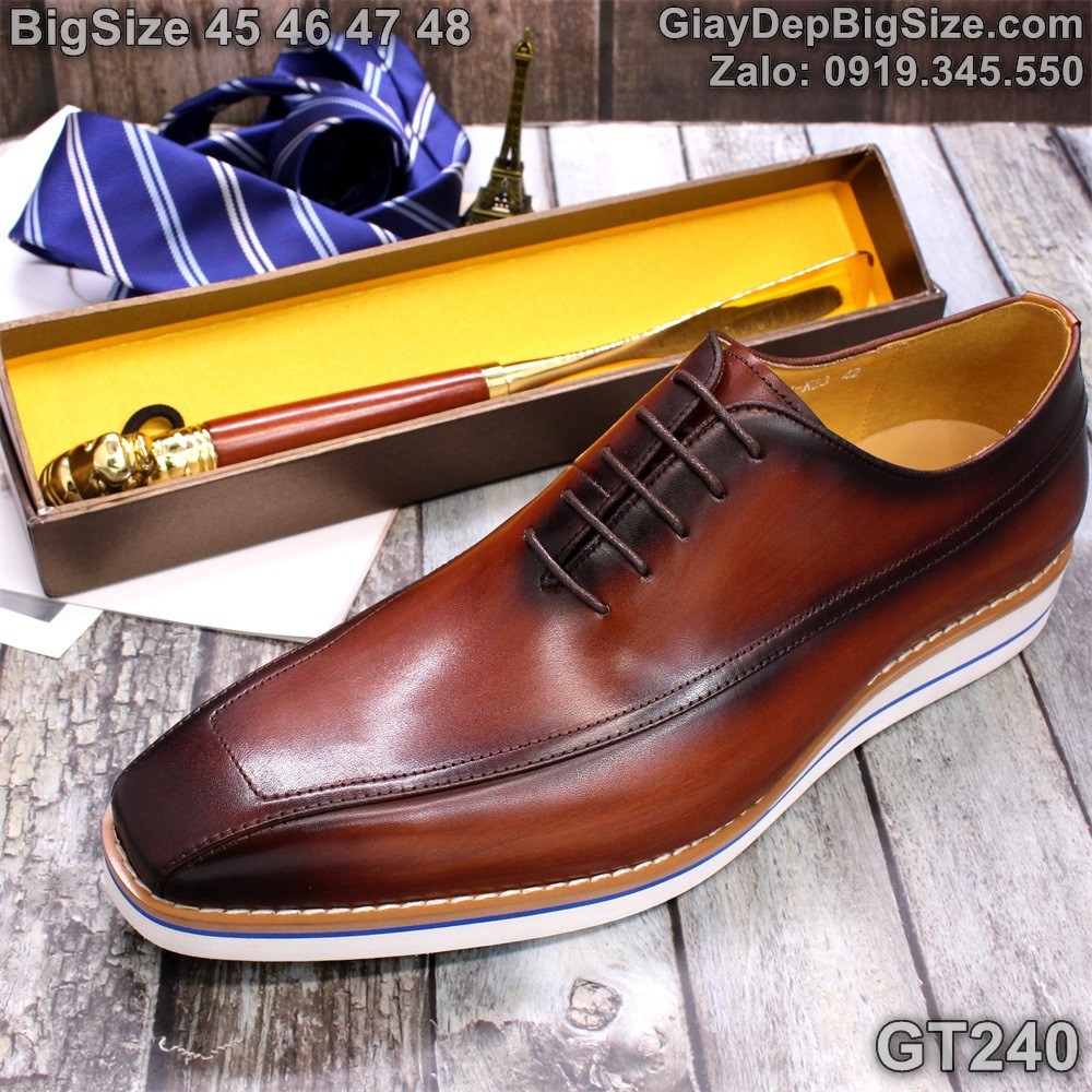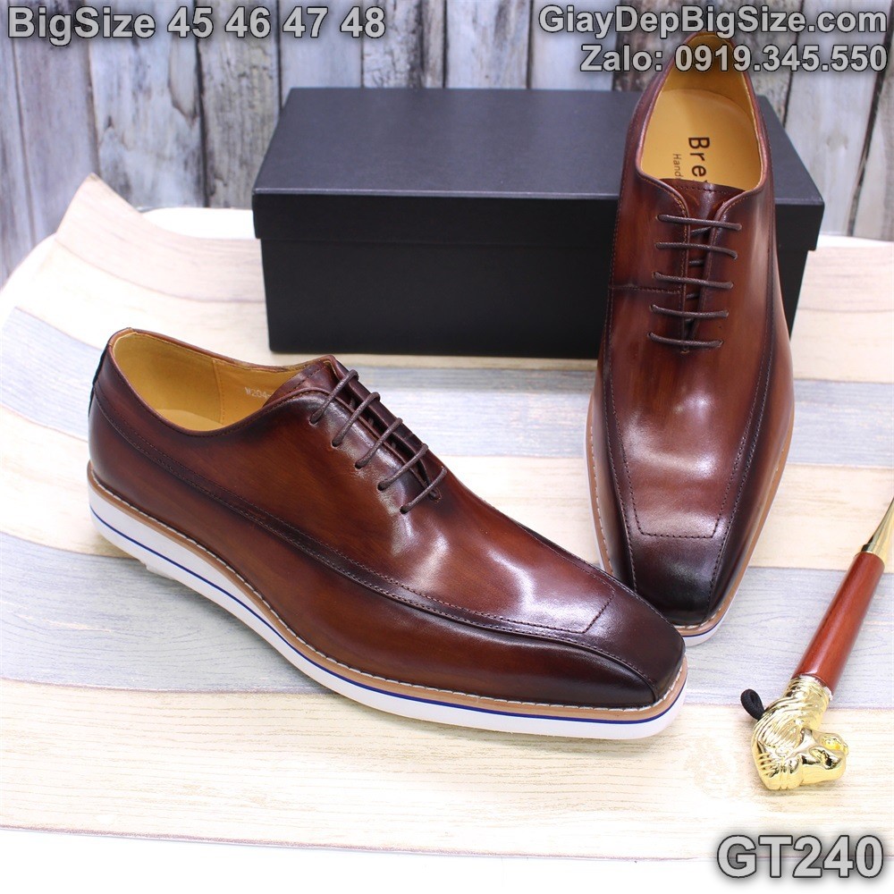 Giày da đóng thủ công, giày tây đế phẳng big size cỡ lớn 45 46 47 48 cho nam cao to chân ú bè