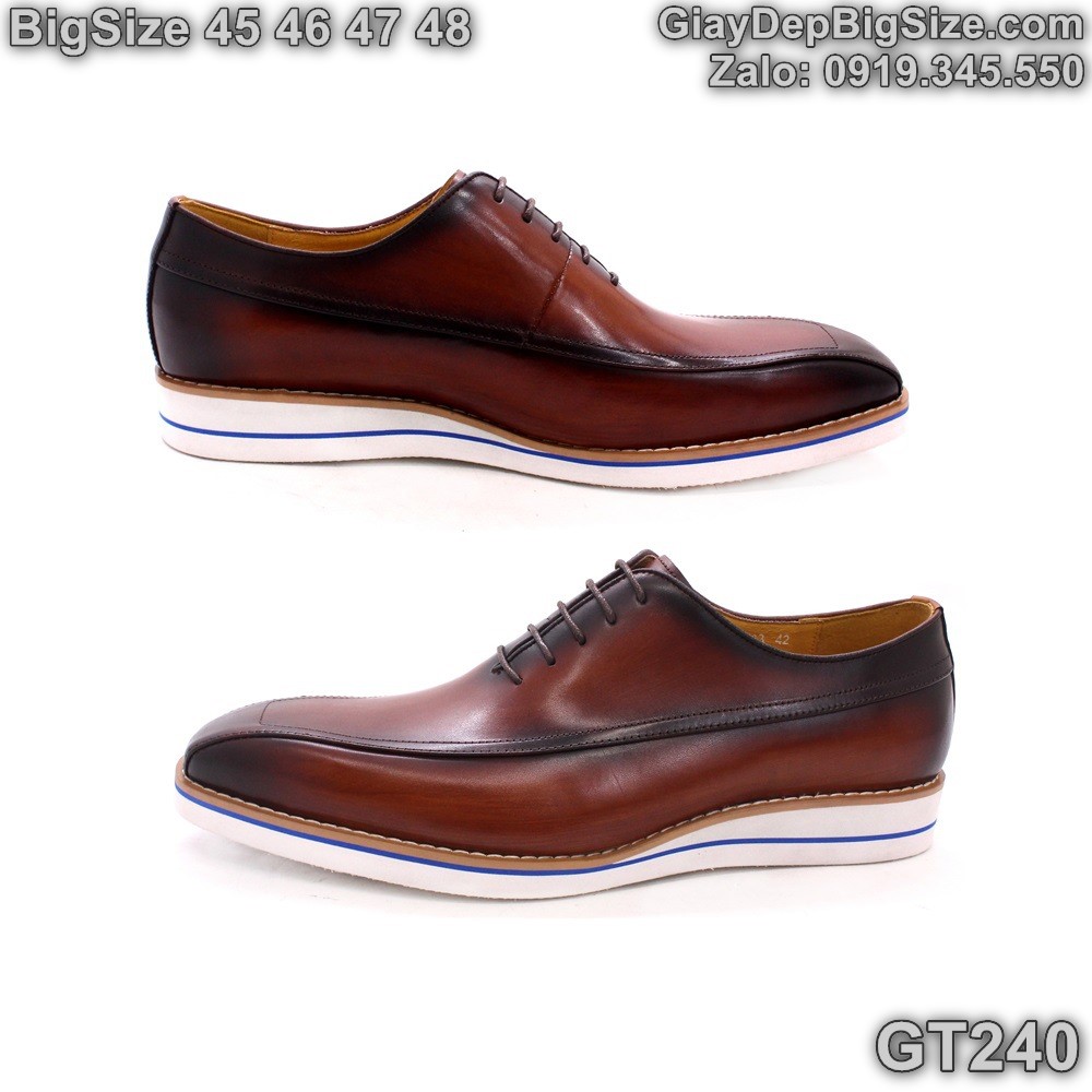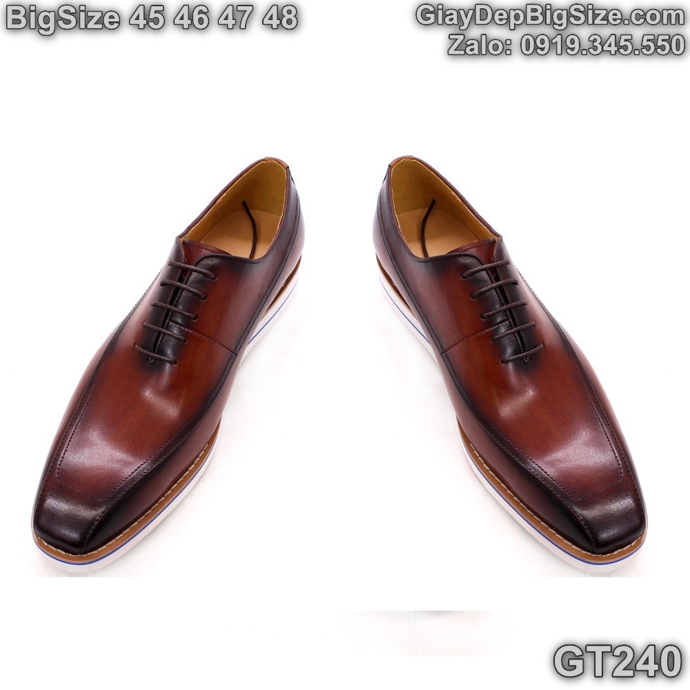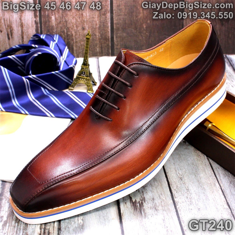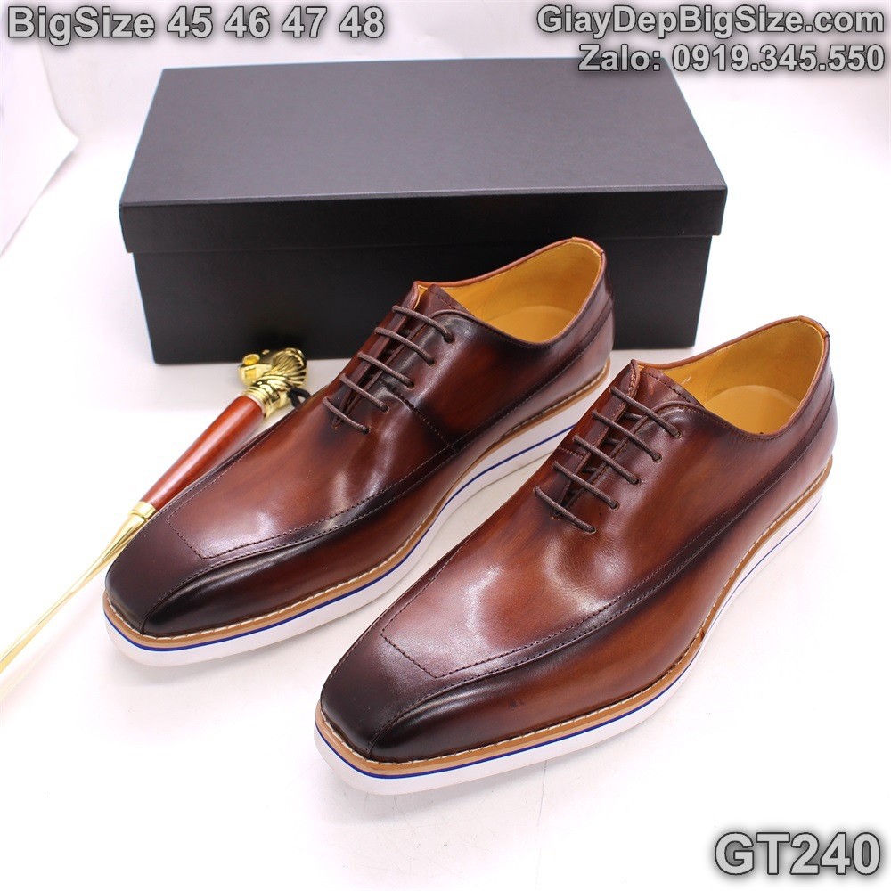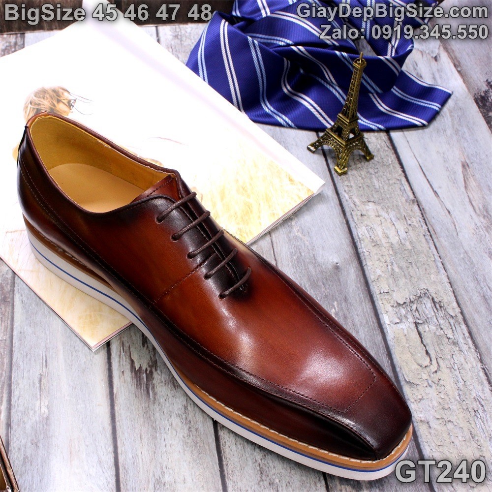 Giày da đóng thủ công, giày tây đế phẳng big size cỡ lớn 45 46 47 48 cho nam cao to chân ú bè