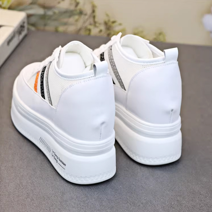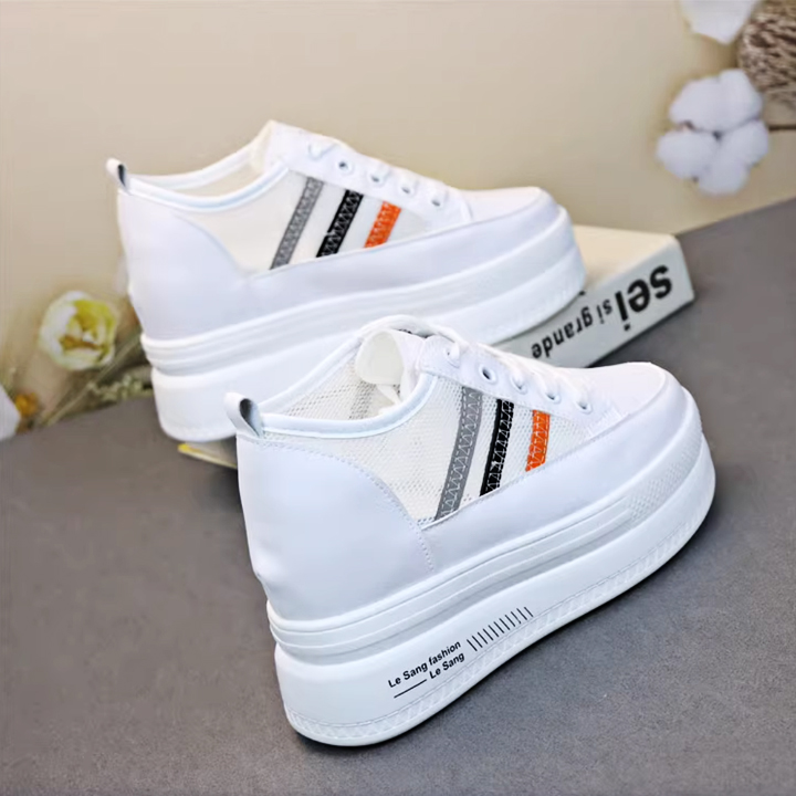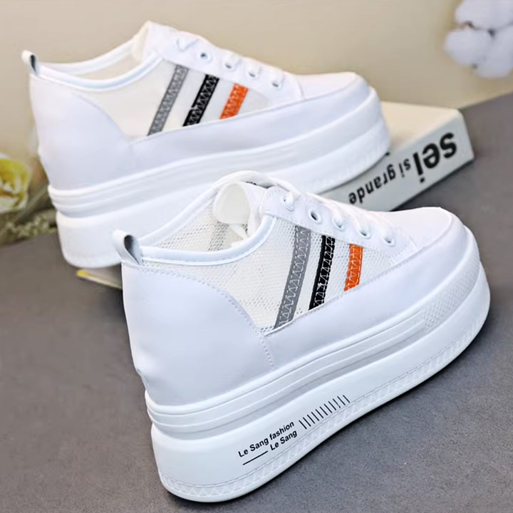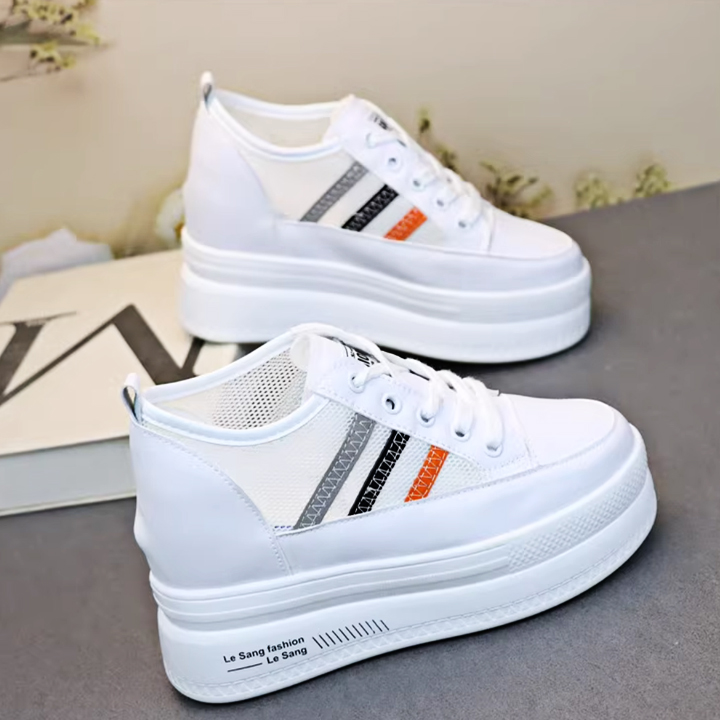 Giày Đế Cao Da Vi Sợi Phối Lưới 9.5cm PS640-1335