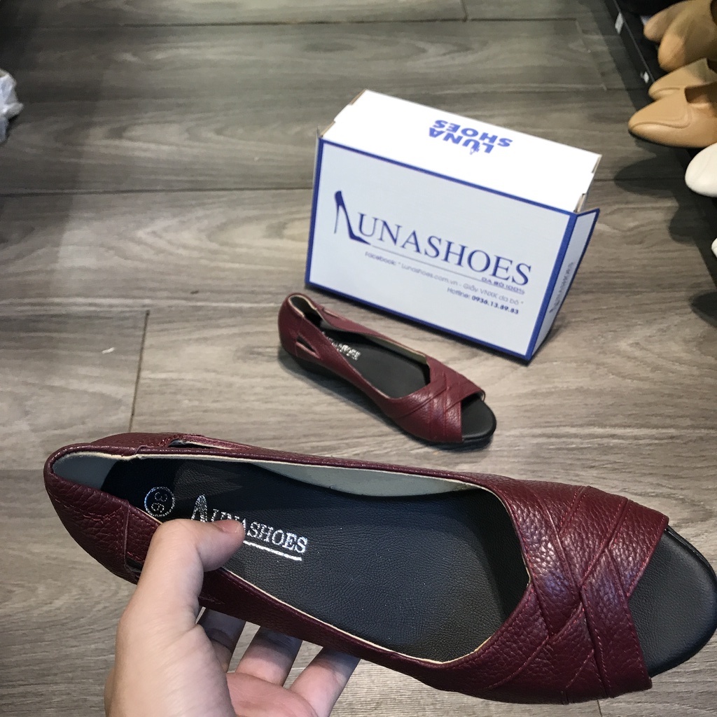 Giày đế xuồng búp bê nữ 3 phân Lunashoes (25805) hở mũi da thật cao cấp dễ đi kiểu Hàn quốc nhiều màu