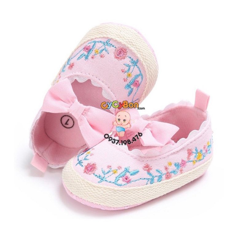 Giới thiệu [Mã SKAMLTEX5 giảm 10K đơn 50K] Giày Dép Tập Đi Cho Bé Gái Đế Vải Màu Hồng Bông Vải Thêu Siêu Xinh !