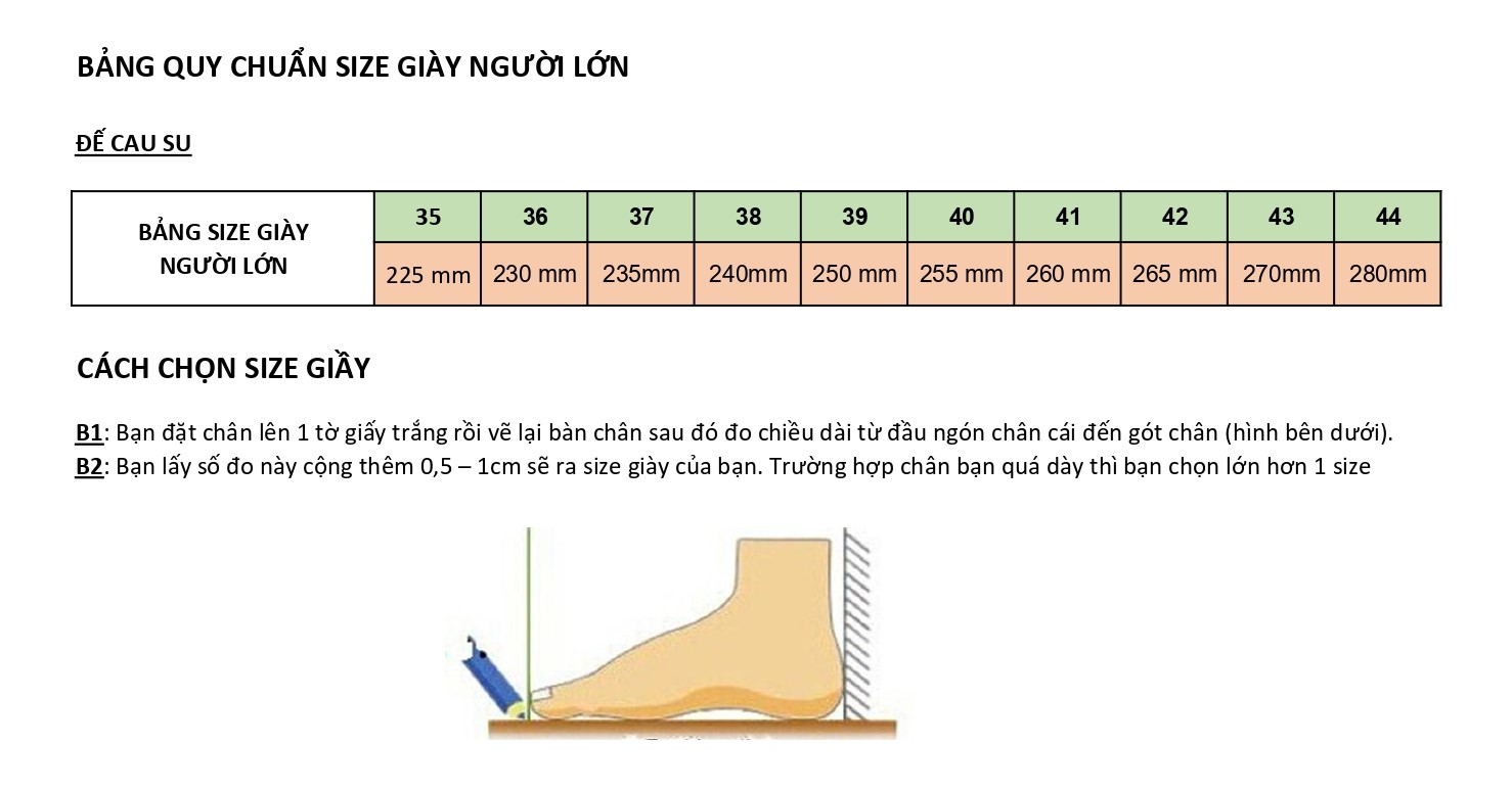 (Đế cau su có rãnh, lỗ thoát nước, thoáng khí, không trơn)