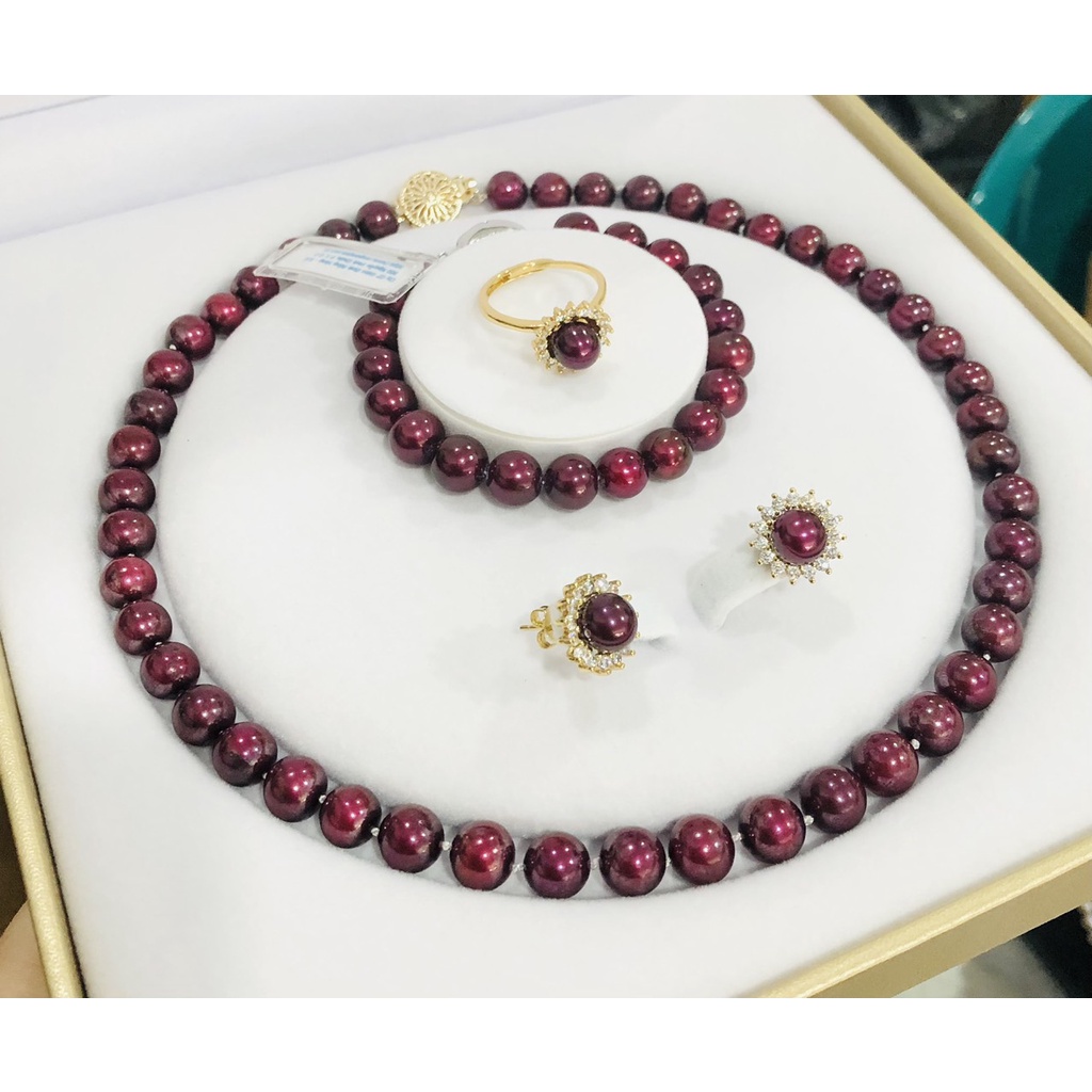 ( Có giấy kiểm định ) Bộ trang sức hạt trai màu đỏ đô 9ly