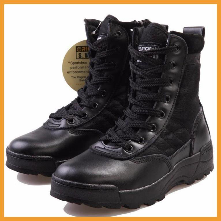 Giày Quân Đội - Giày Lính Mỹ Giá Rẻ - Giày Chiến Binh - Giày Boot Nam Chiến Thuật Giày là mẫu giày được thiết kế riêng cho lực lượng của Mĩ. So với các mẫu giày thường dùng đi phượt,đi du lịch… dòng sản phẩm này có một số điểm vượt trội. Giày cao cổ, chống nước, chống bẩn Rất nhẹ, nhẹ hơn khoảng 0,5kg so với các mẫu giày combat thường thấy Kiểu dáng thể thao, trẻ trung, tạo cho các bạn nam vẻ khỏe khoắn, năng động. Bền chắc, thuận tiện cho di chuyển Thoải mái cổ chân, giày swat dễ dàng mang và tháo Giày CAO cổ trống thấm nước, trơn trượt, giảm xóc.