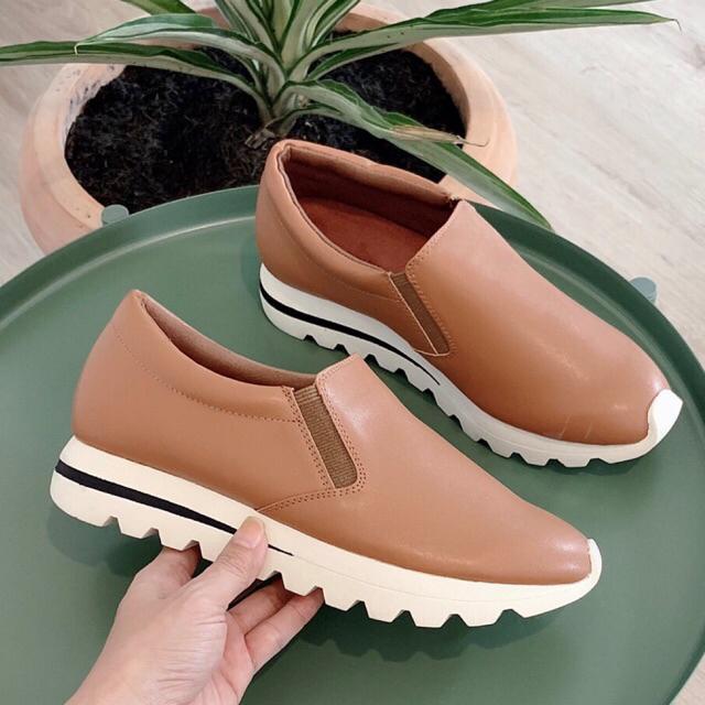 Giới thiệu Giày lười da bò đế dày nẹp kim loại (+8.5cm)