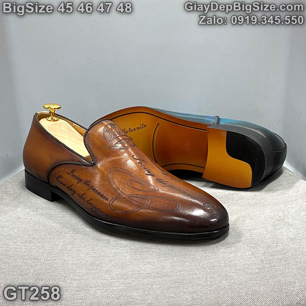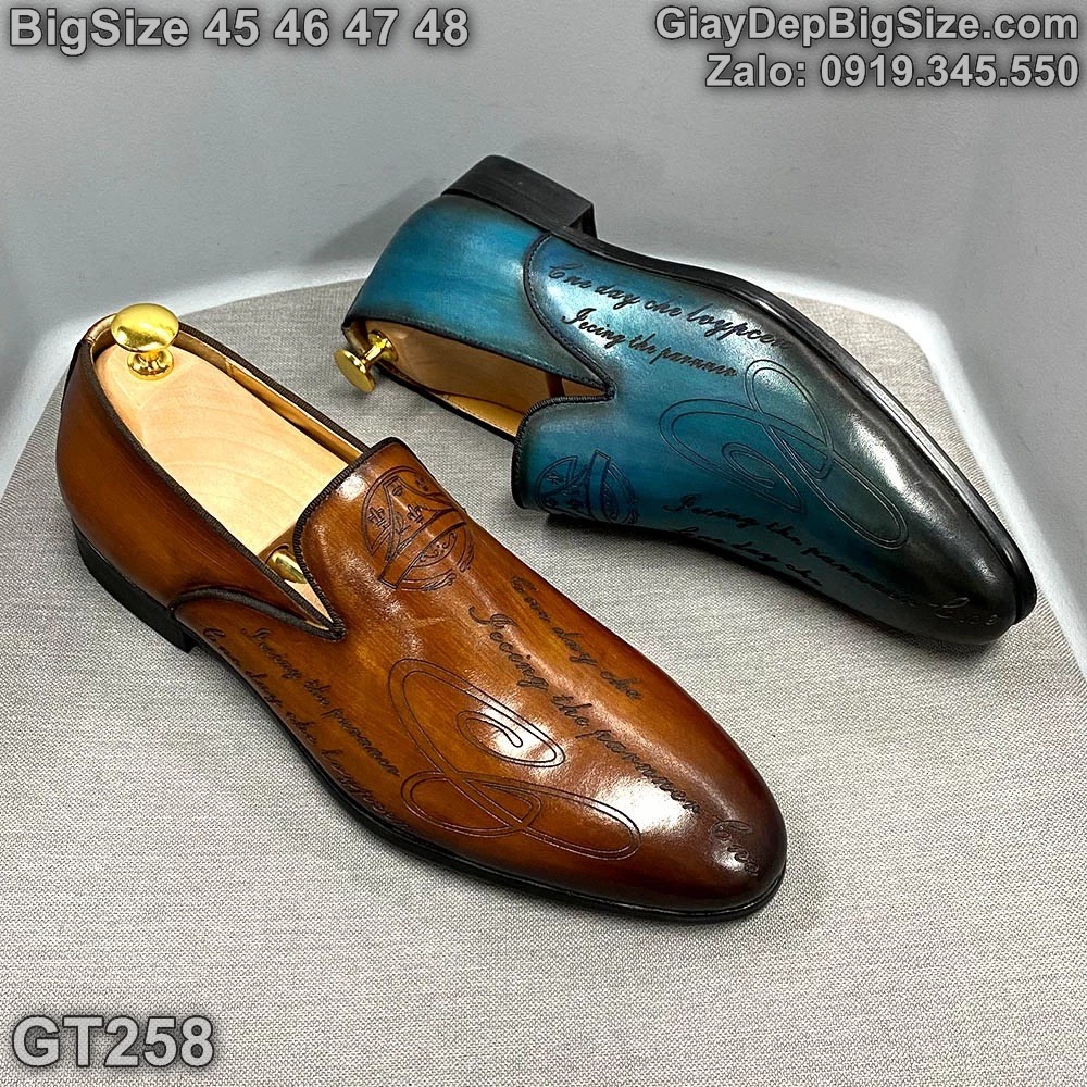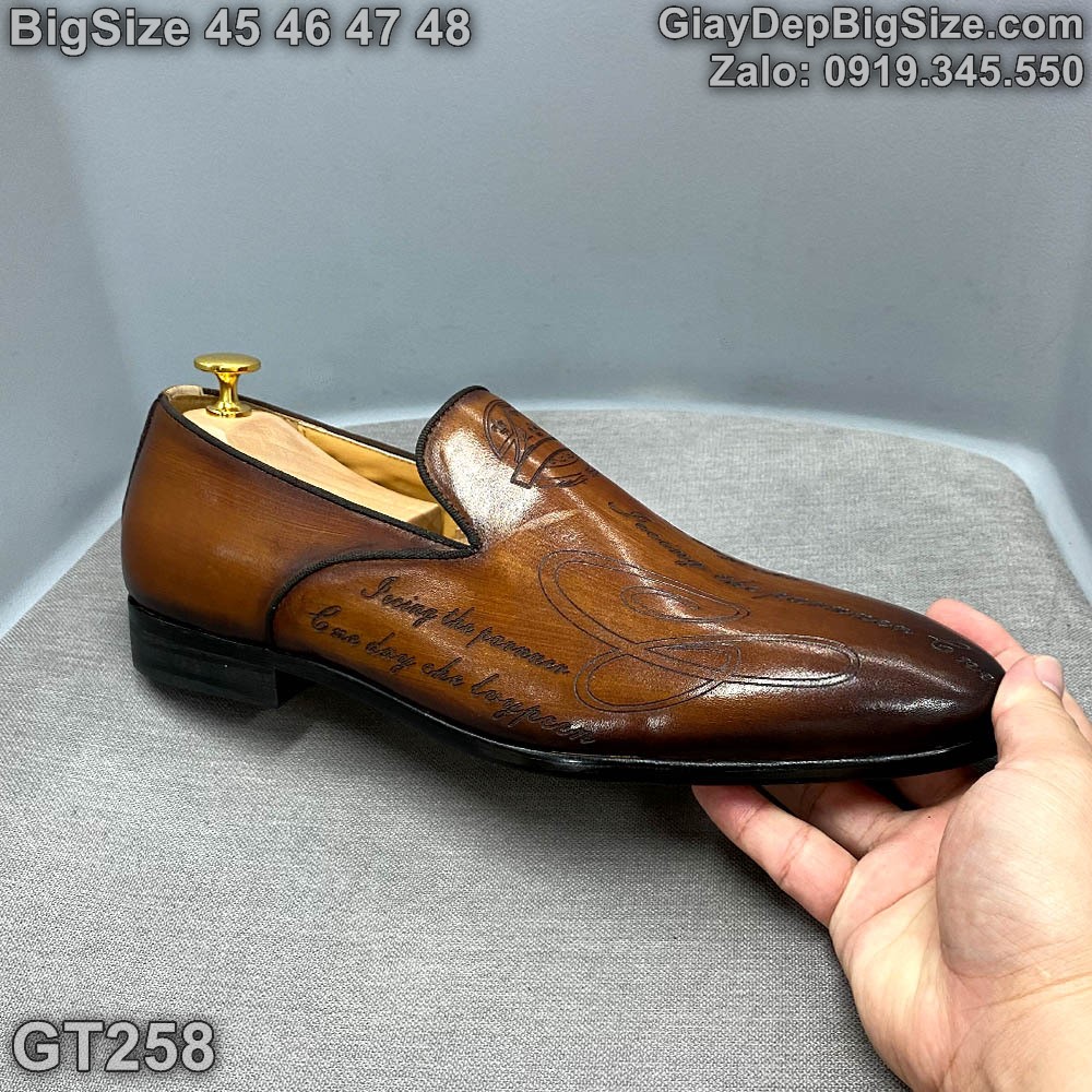 Giày lười da đóng thủ công, giày tây công sở big size cỡ lớn 45 46 47 48 cho nam cao to chân ú bè
