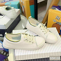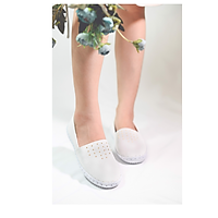 Giày lười cổ thấp trắng da mịn viền cổ màu đế bệt
